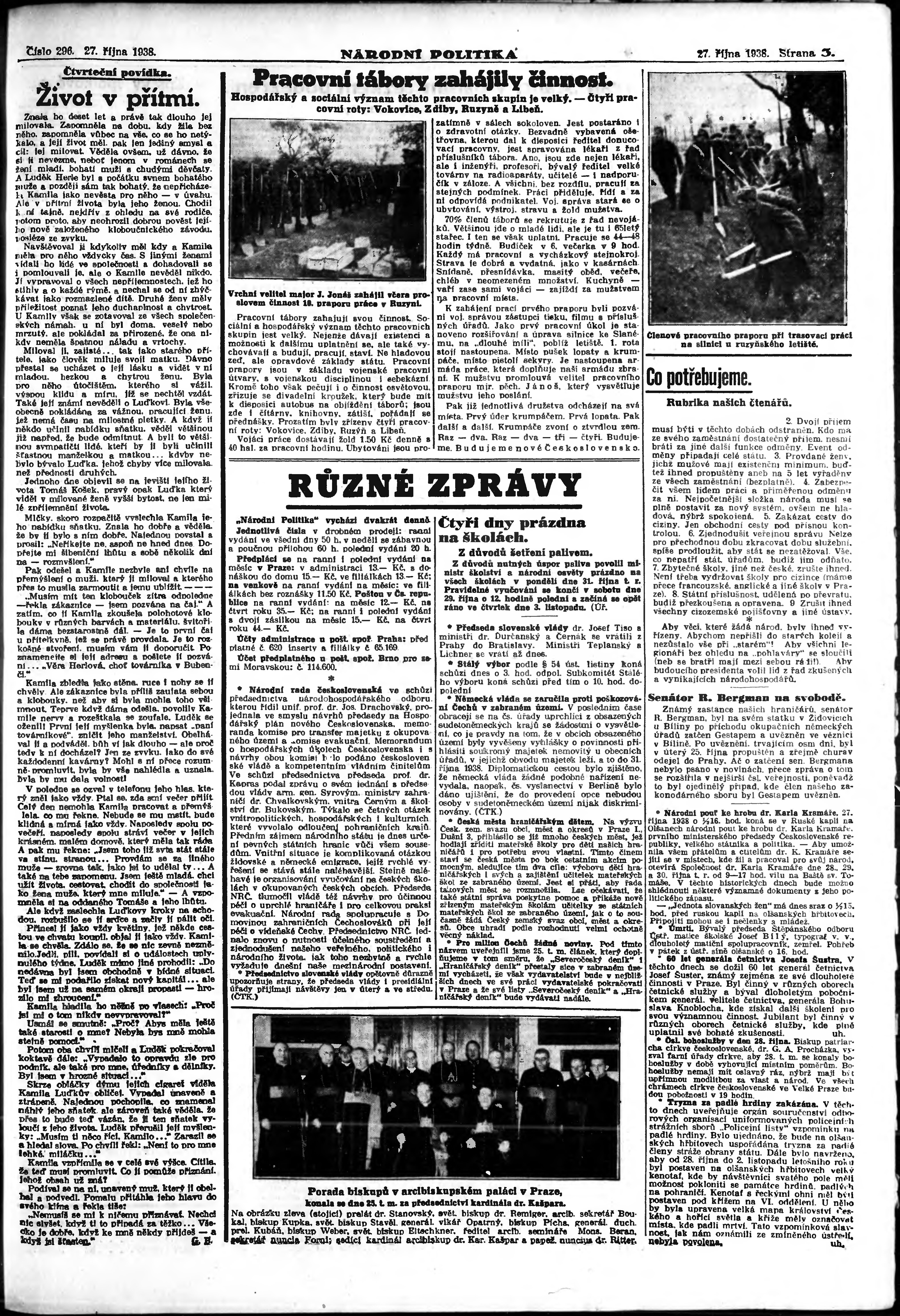 * Datum vydání výtisku: 27.10.1938 Číslo výtisku: 296 Poznámky k výtisku: ranní vydání; vydání pro Prahu;