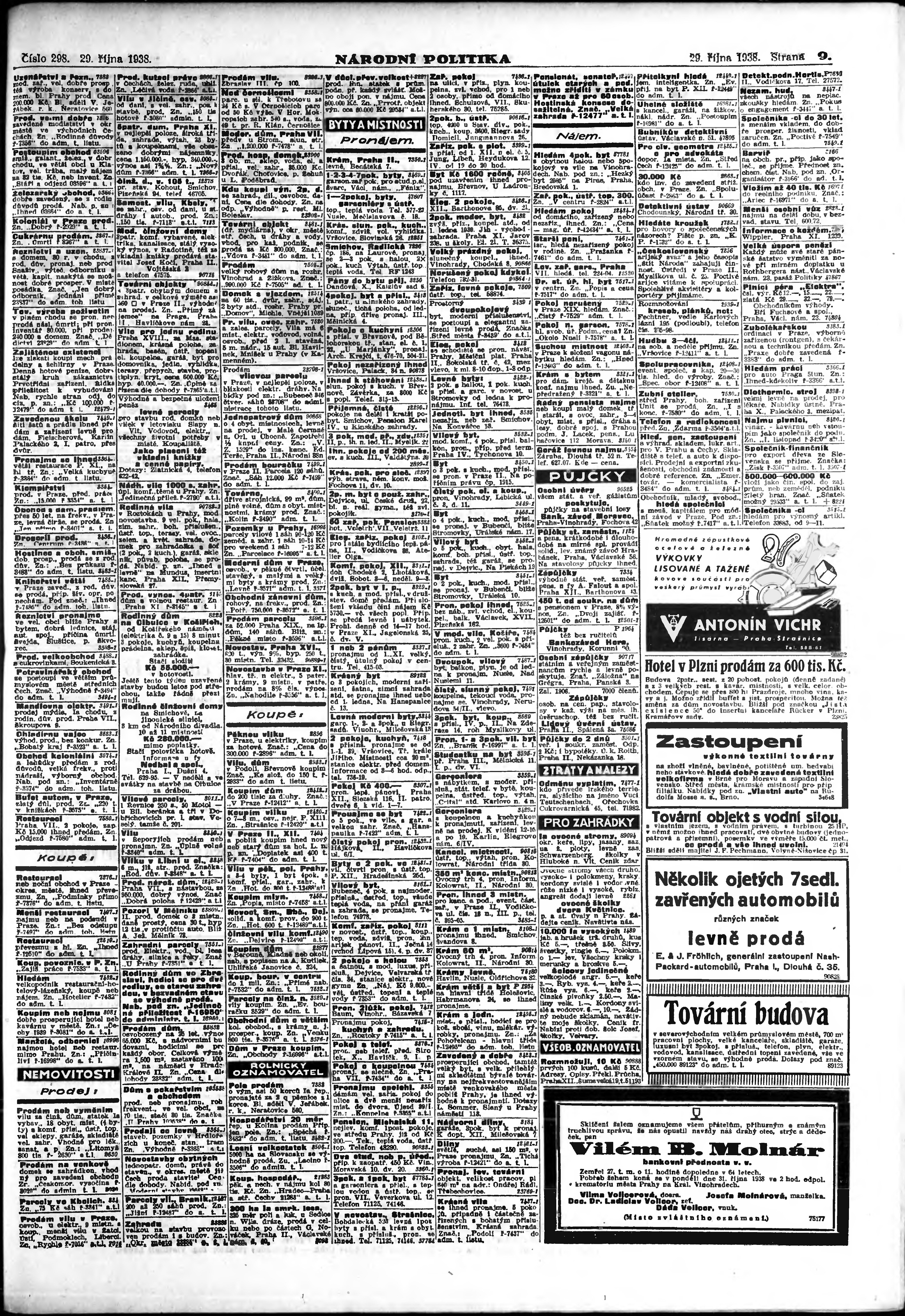 * Datum vydání výtisku: 29.10.1938 Číslo výtisku: 298 Poznámky k výtisku: ranní vydání; vydání pro Prahu;