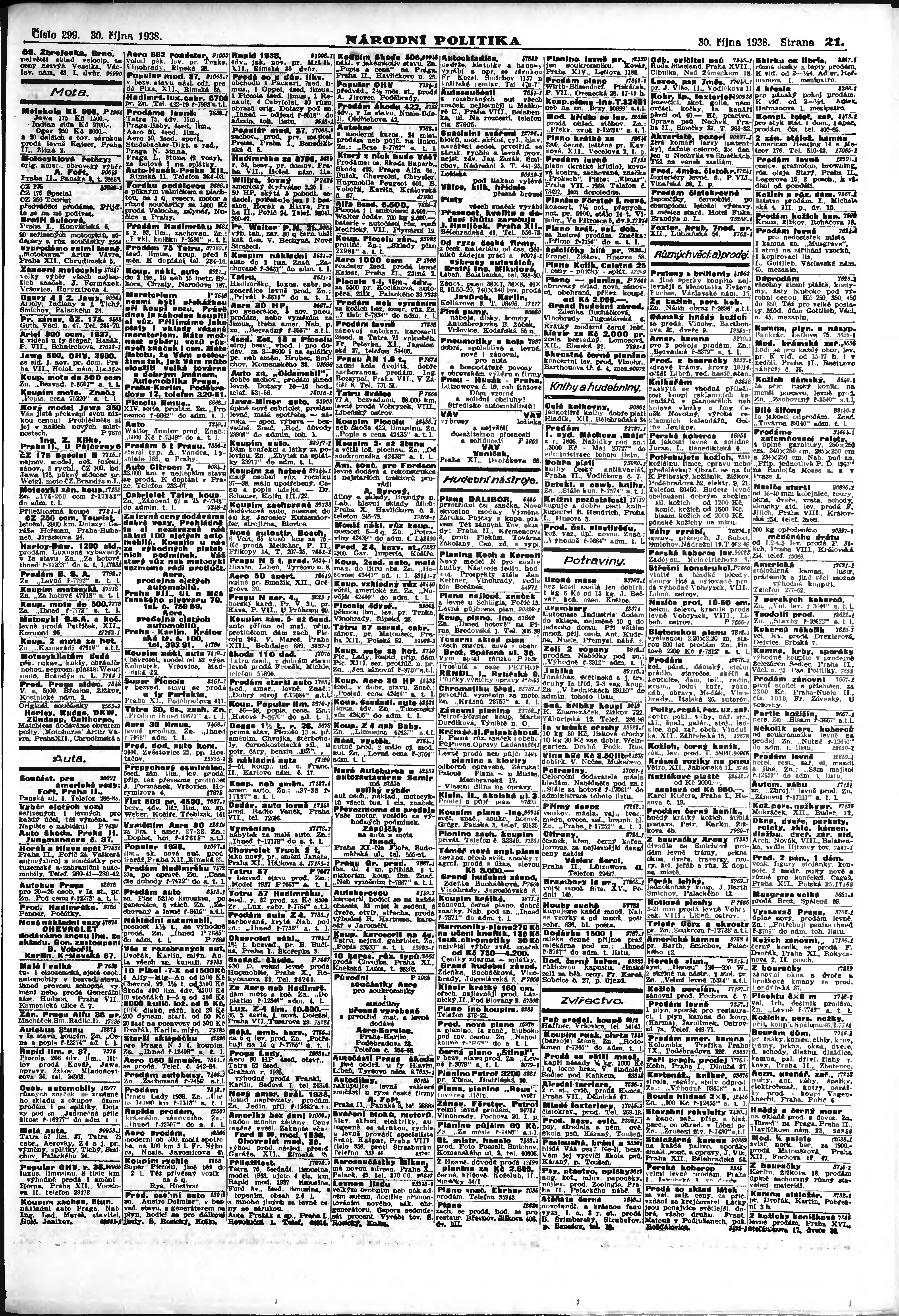 * Datum vydání výtisku: 30.10.1938 Číslo výtisku: 299 Poznámky k výtisku: ranní vydání;