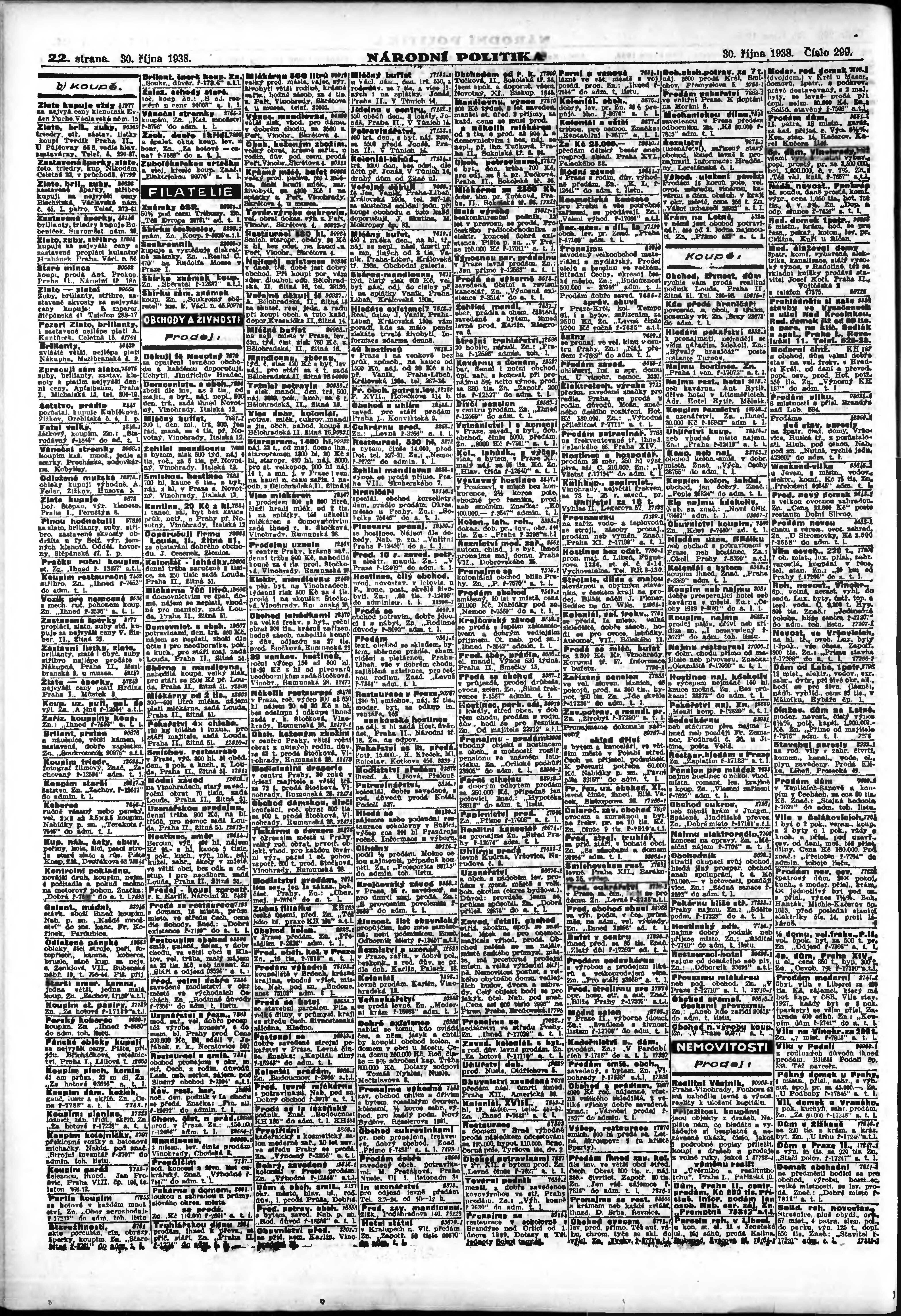 * Datum vydání výtisku: 30.10.1938 Číslo výtisku: 299 Poznámky k výtisku: ranní vydání;