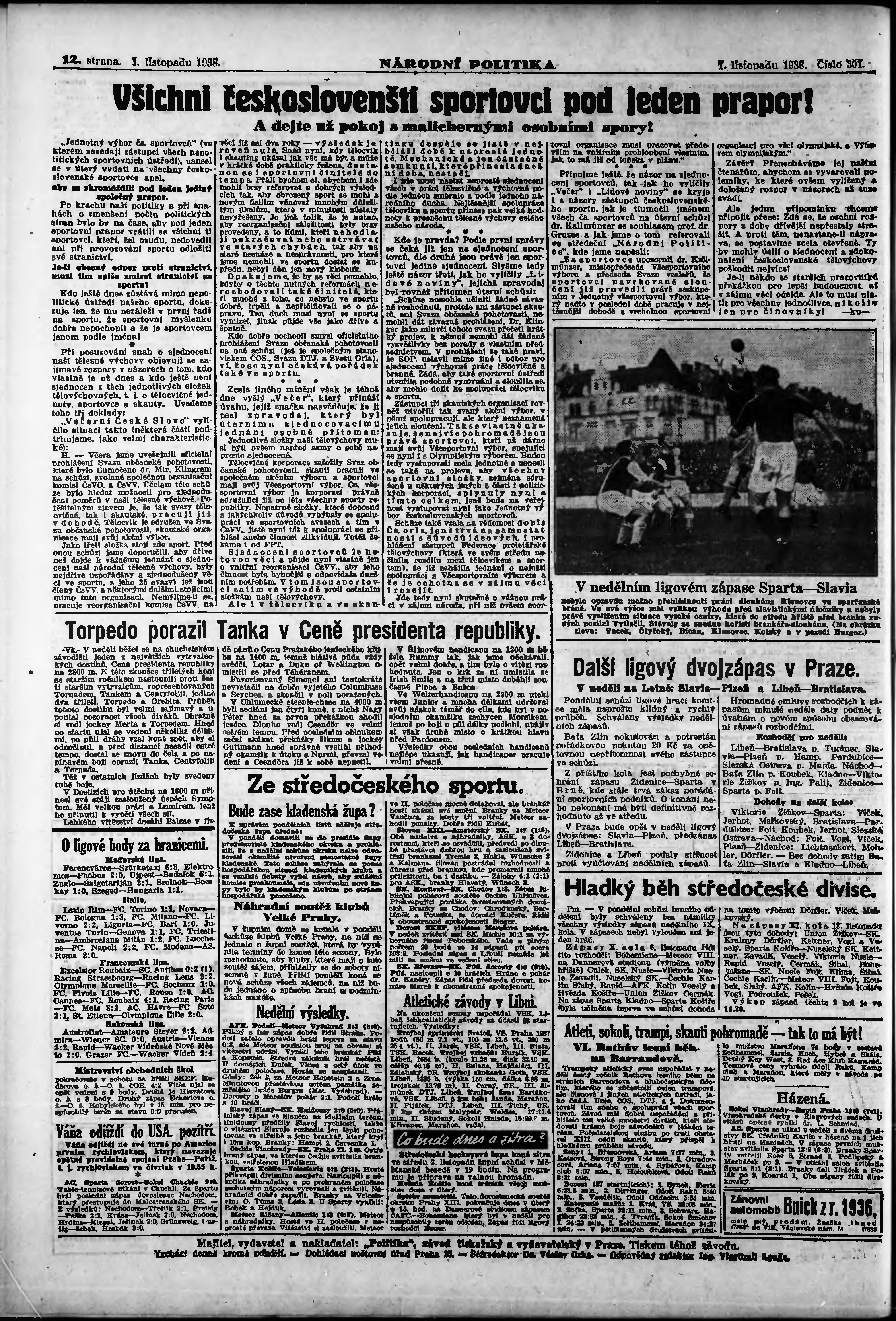 * Datum vydání výtisku: 1.11.1938 Číslo výtisku: 301 Poznámky k výtisku: ranní vydání; vydání pro Prahu;