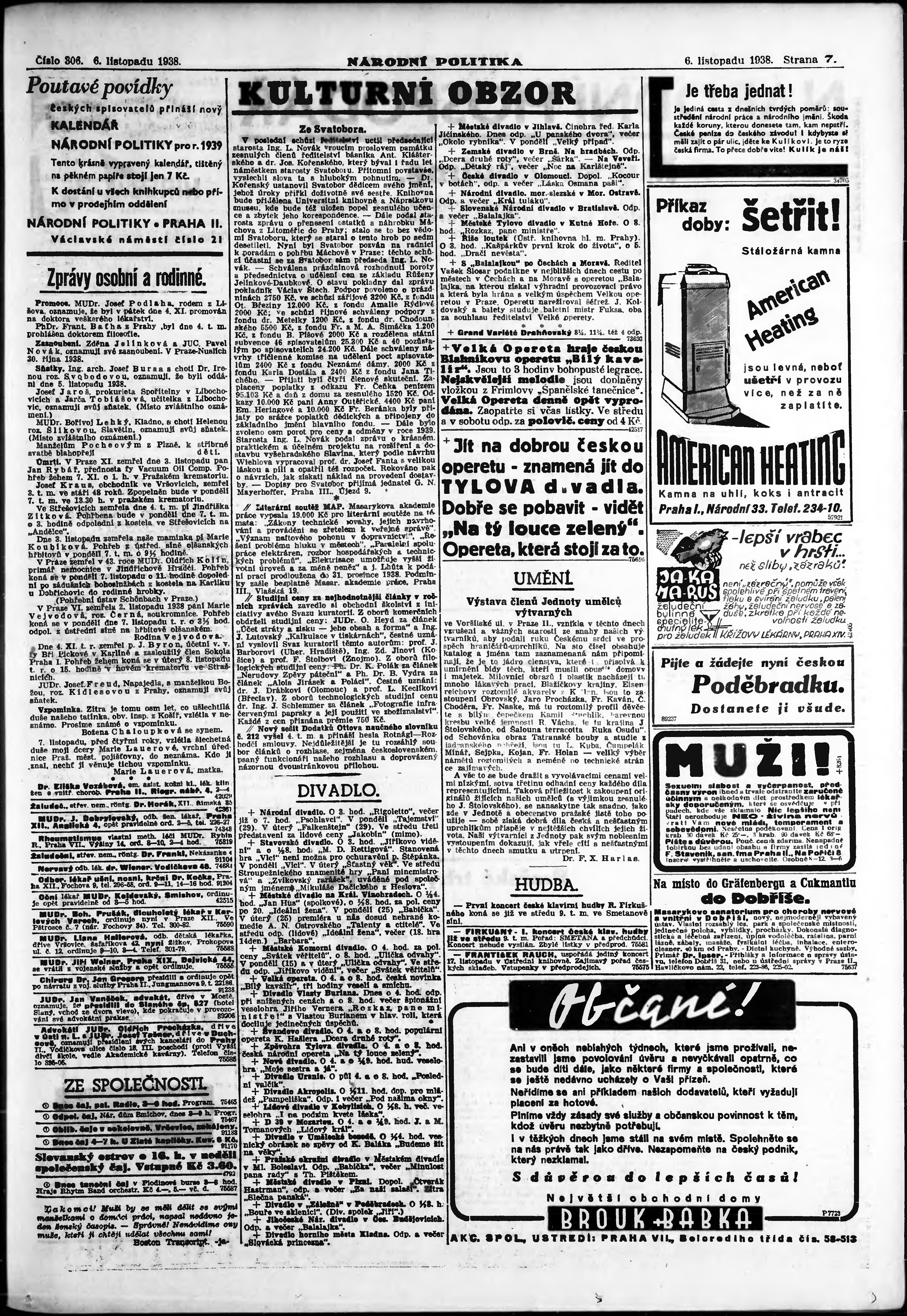* Datum vydání výtisku: 6.11.1938 Číslo výtisku: 306 Poznámky k výtisku: ranní vydání;