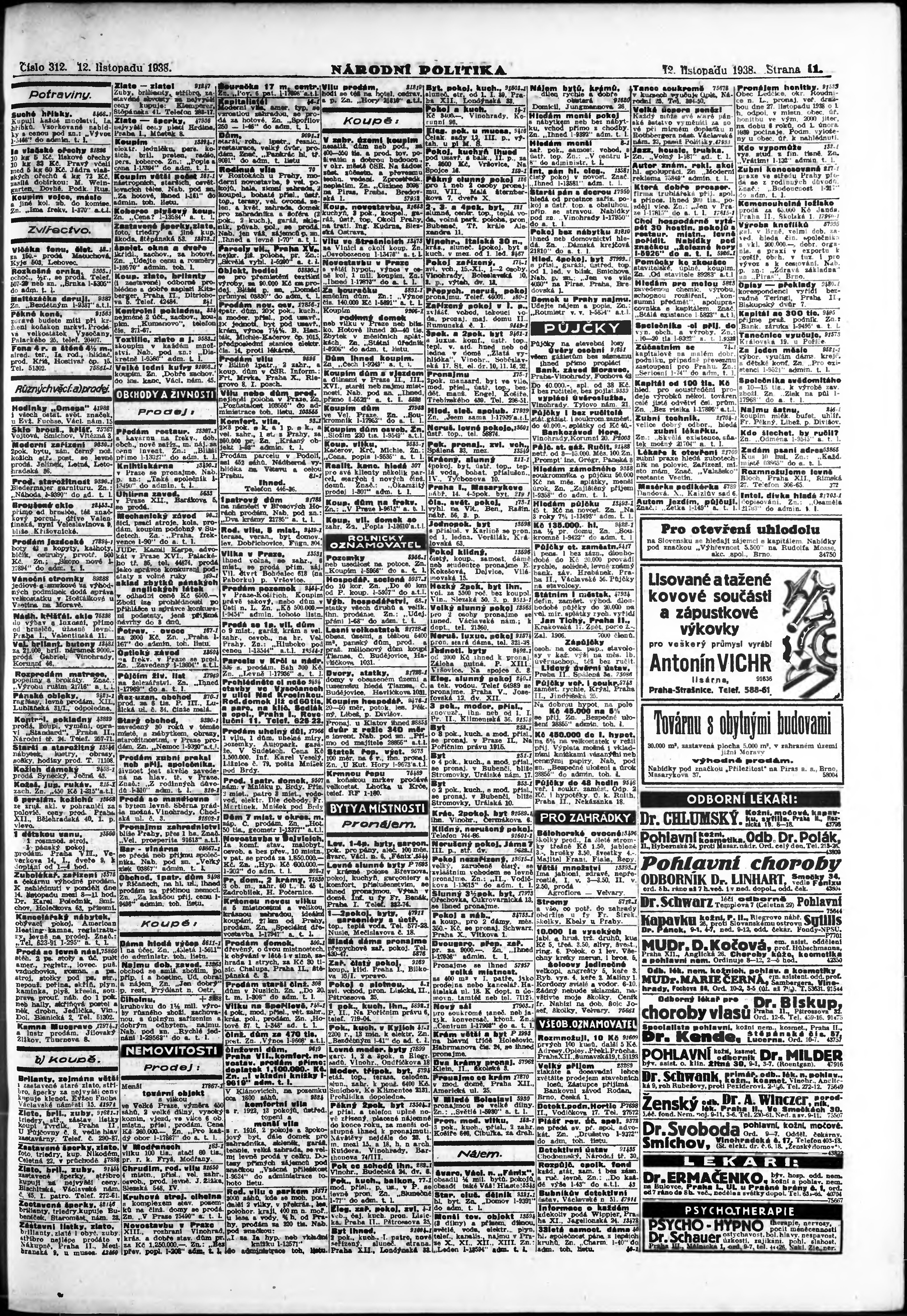 * Datum vydání výtisku: 12.11.1938 Číslo výtisku: 312 Poznámky k výtisku: ranní vydání;