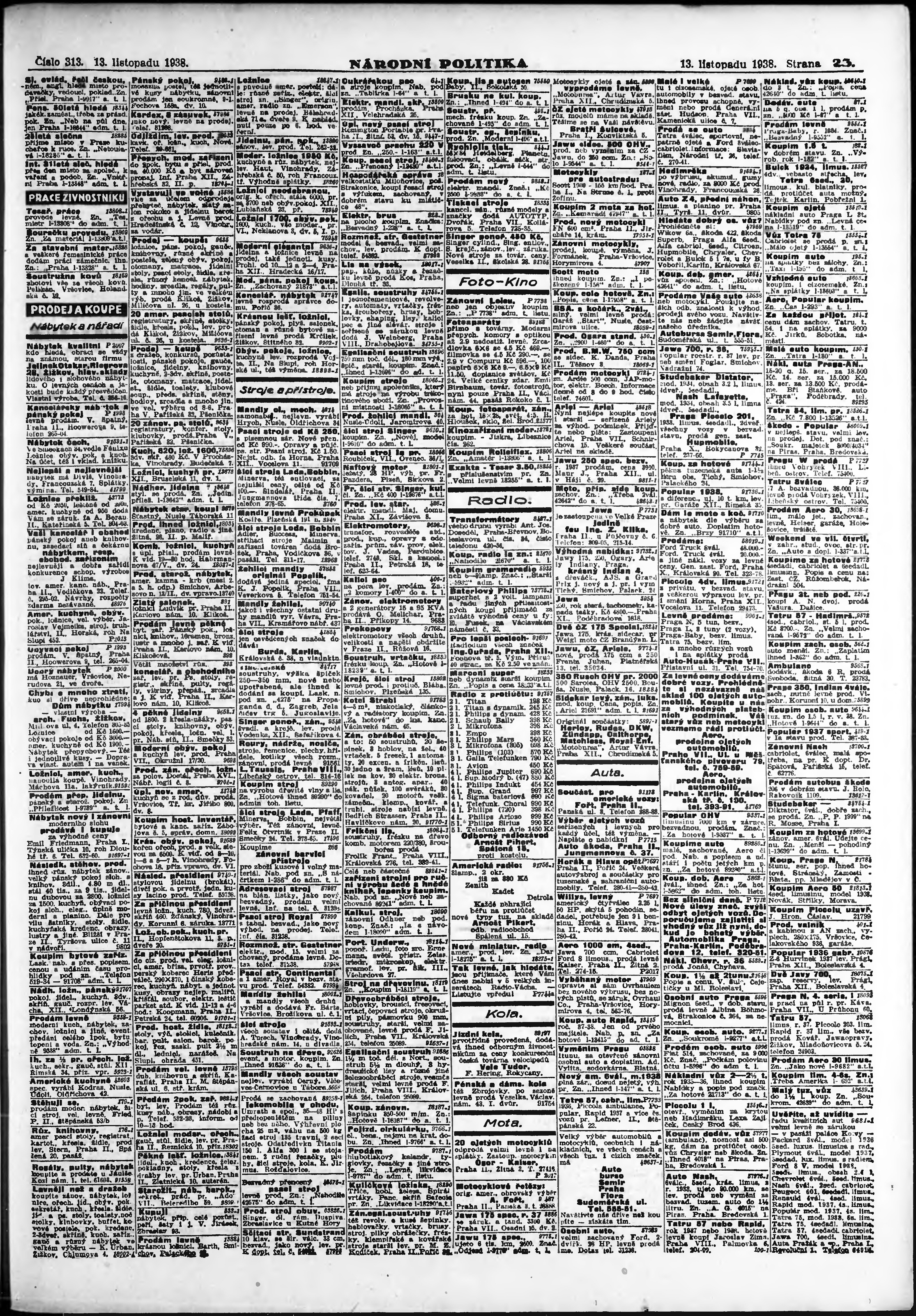 * Datum vydání výtisku: 13.11.1938 Číslo výtisku: 313 Poznámky k výtisku: ranní vydání;
