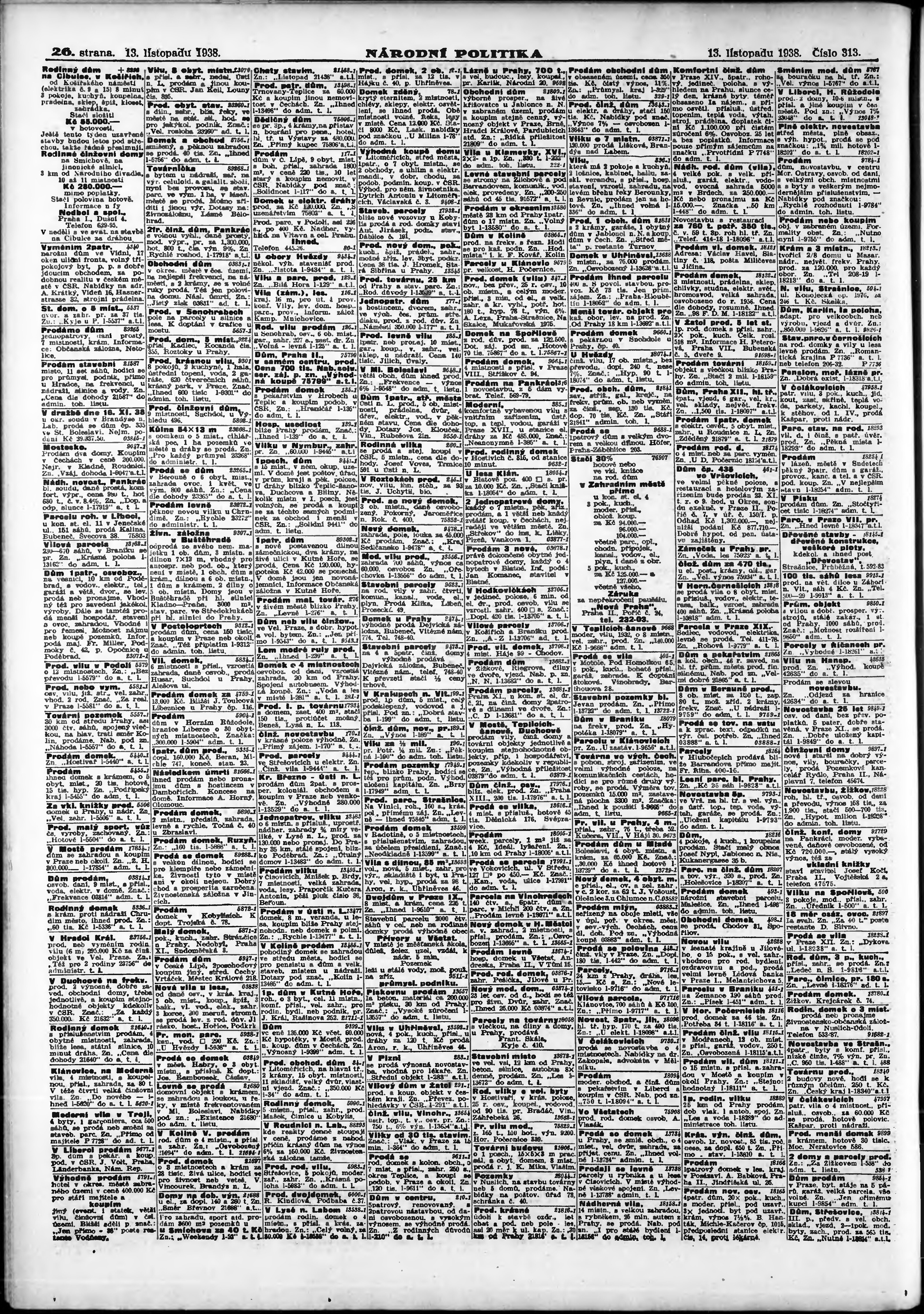 * Datum vydání výtisku: 13.11.1938 Číslo výtisku: 313 Poznámky k výtisku: ranní vydání;