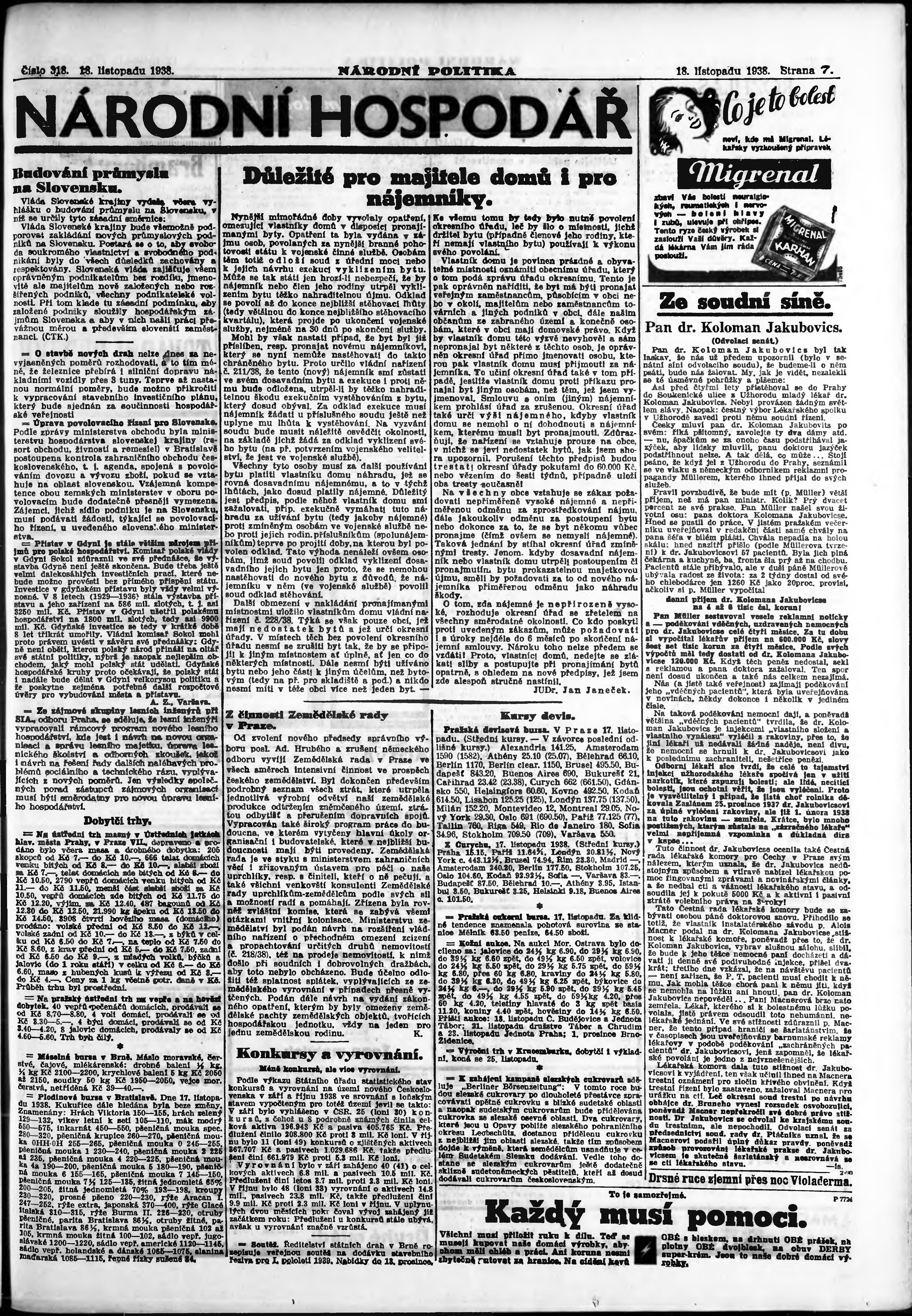 * Datum vydání výtisku: 18.11.1938 Číslo výtisku: 318 Poznámky k výtisku: ranní vydání;