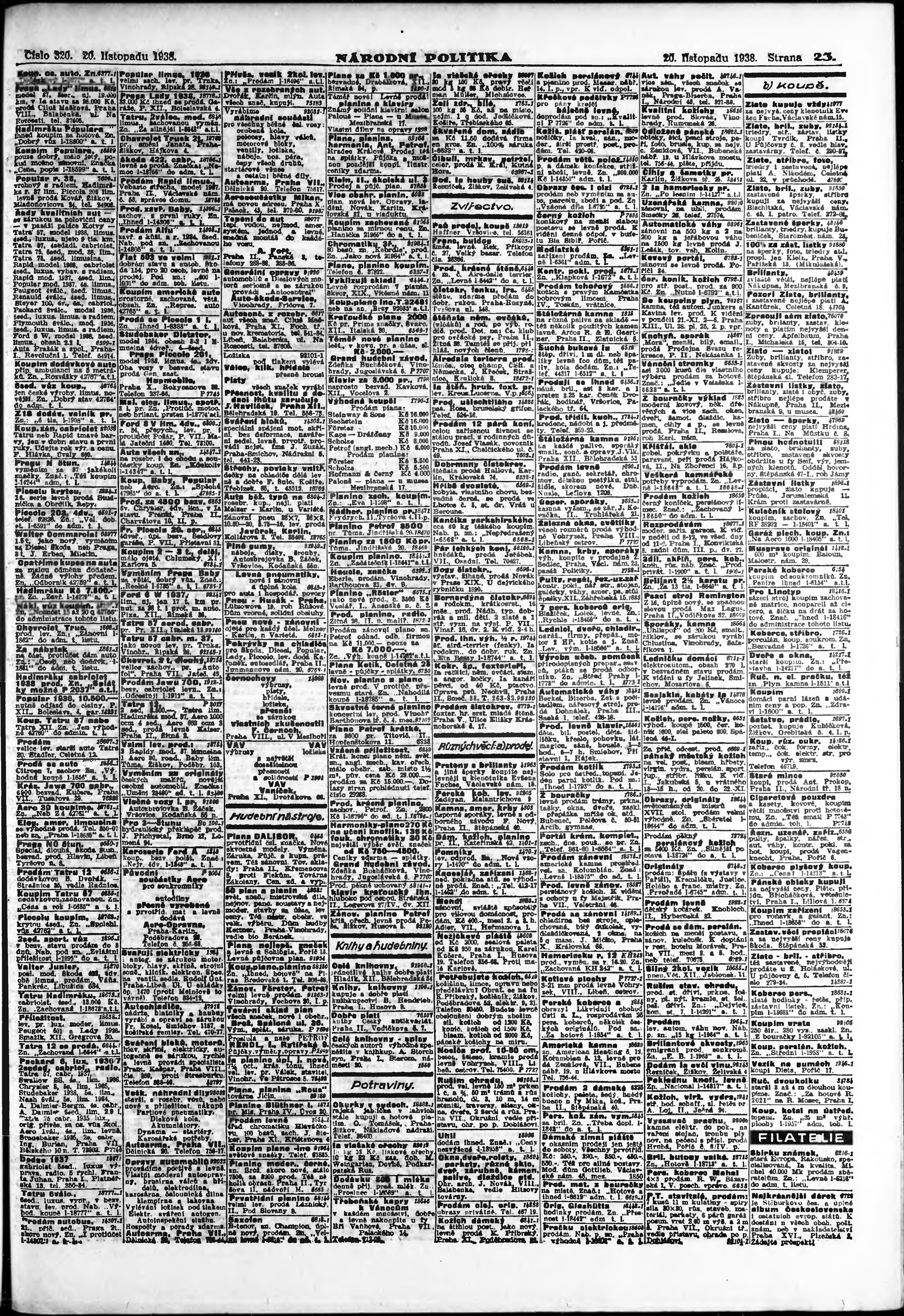 * Datum vydání výtisku: 20.11.1938 Číslo výtisku: 320 Poznámky k výtisku: ranní vydání;