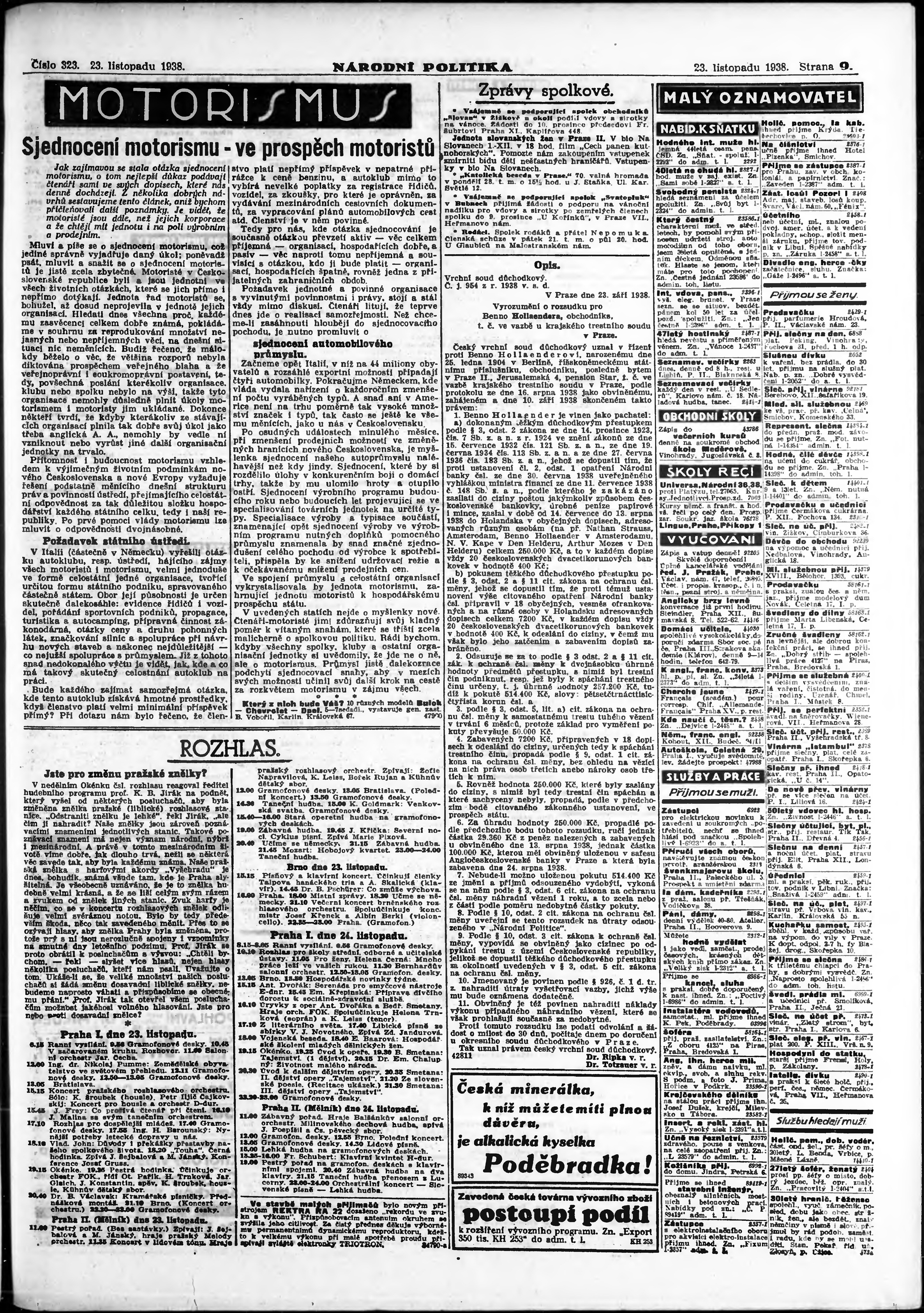 * Datum vydání výtisku: 23.11.1938 Číslo výtisku: 323 Poznámky k výtisku: ranní vydání;