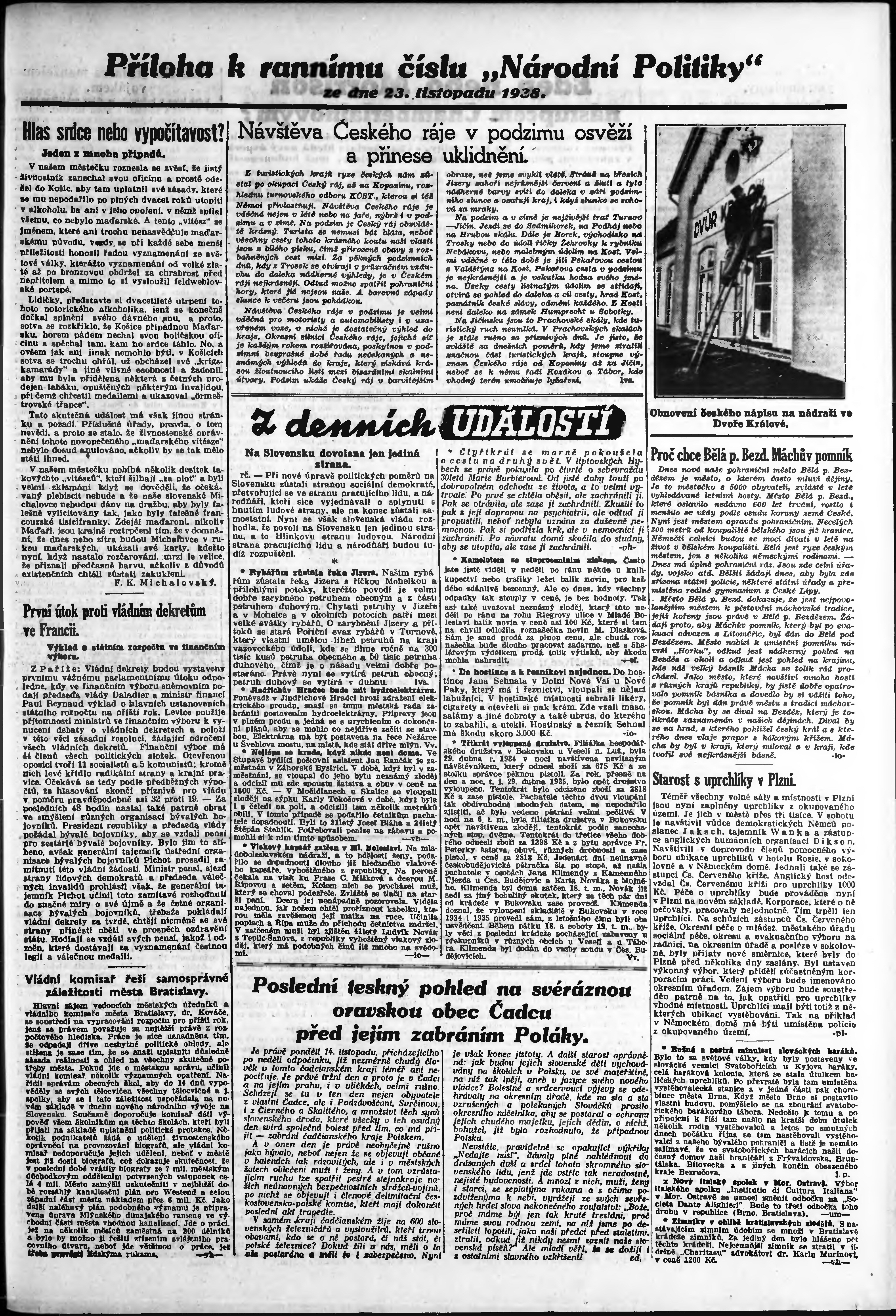 * Datum vydání výtisku: 23.11.1938 Číslo výtisku: 323 Poznámky k výtisku: ranní vydání;