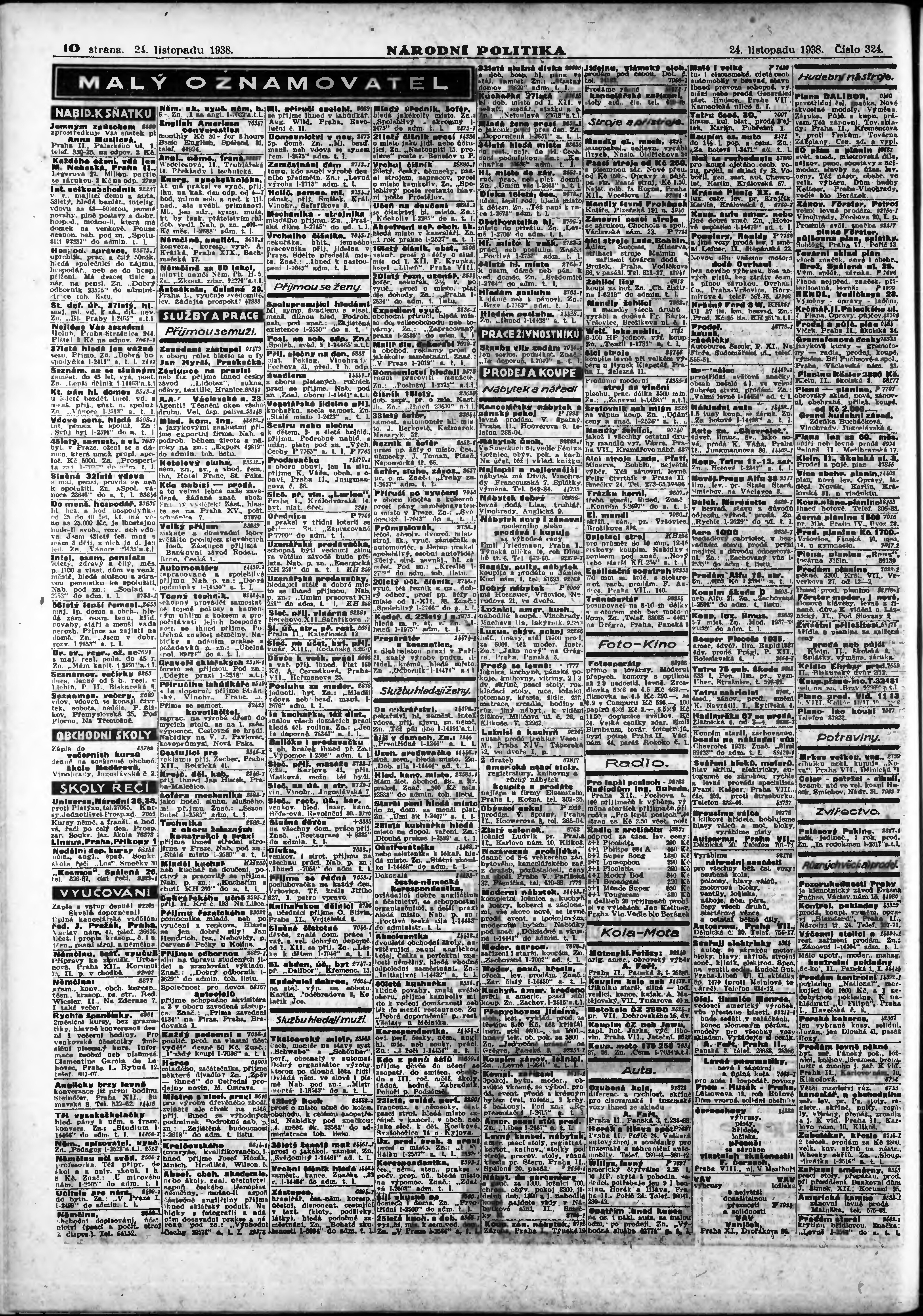 * Datum vydání výtisku: 24.11.1938 Číslo výtisku: 324 Poznámky k výtisku: ranní vydání;