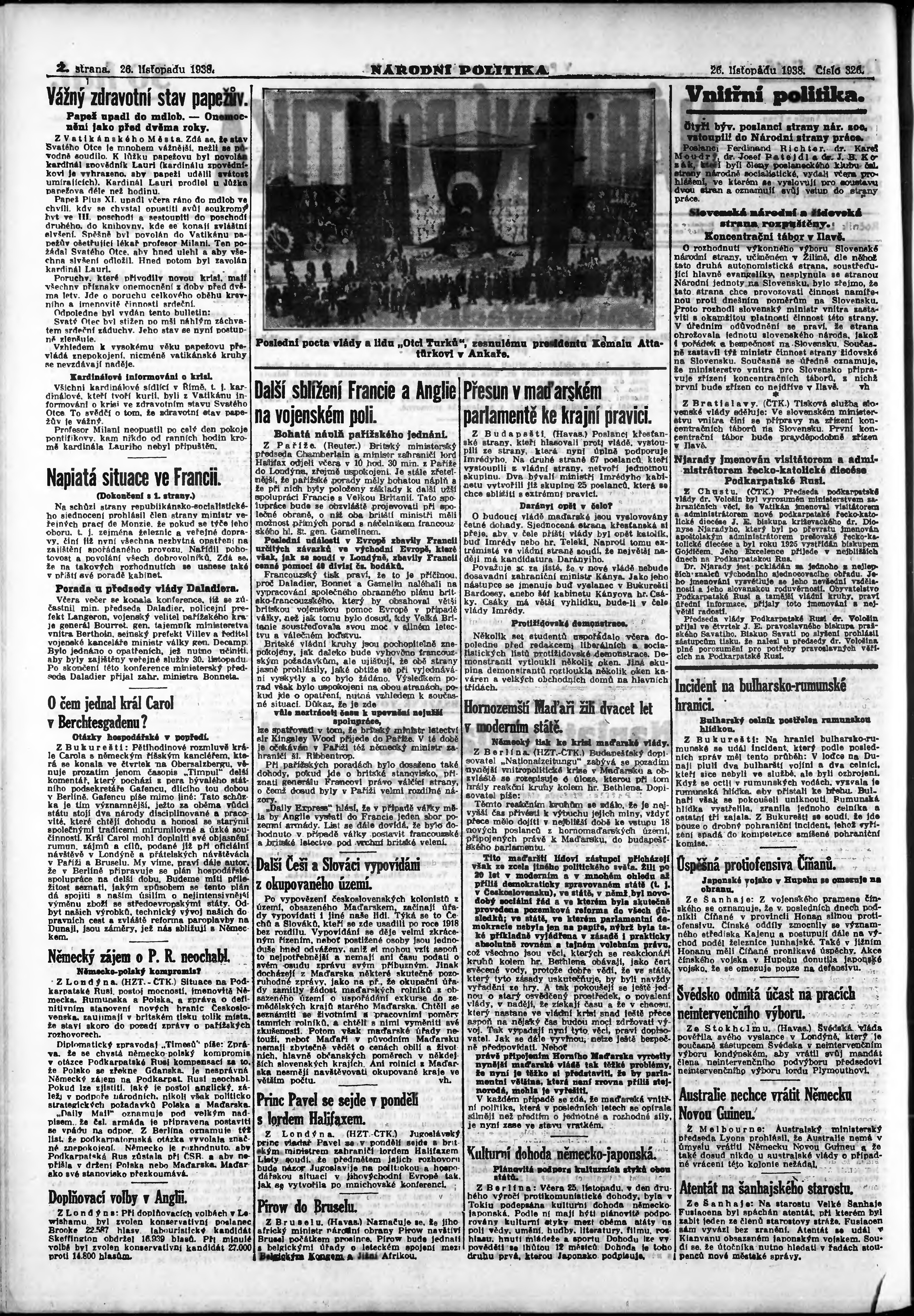 * Datum vydání výtisku: 26.11.1938 Číslo výtisku: 326 Poznámky k výtisku: ranní vydání; vydání pro Prahu;