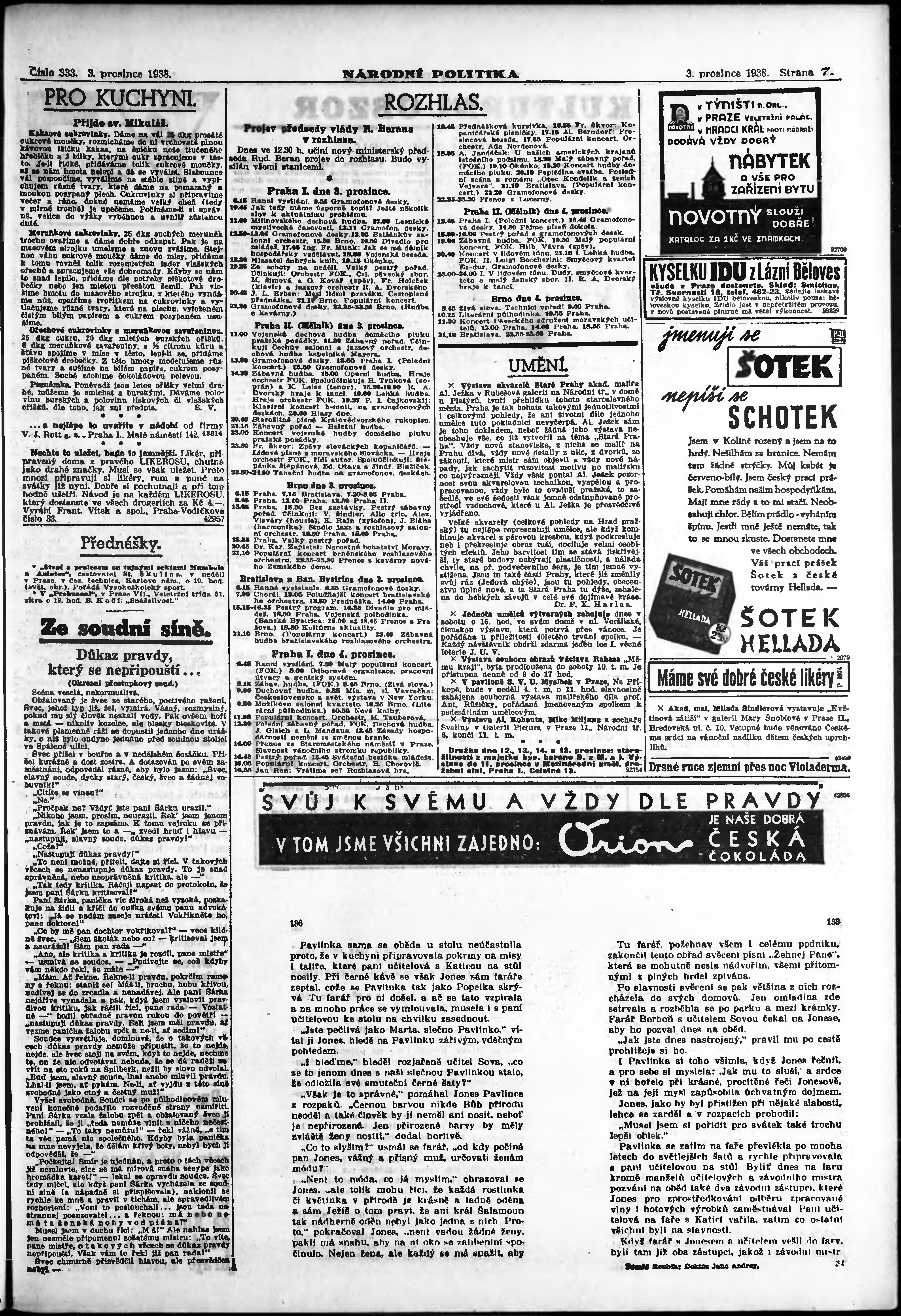 * Datum vydání výtisku: 3.12.1938 Číslo výtisku: 333 Poznámky k výtisku: ranní vydání; vydání pro Prahu;