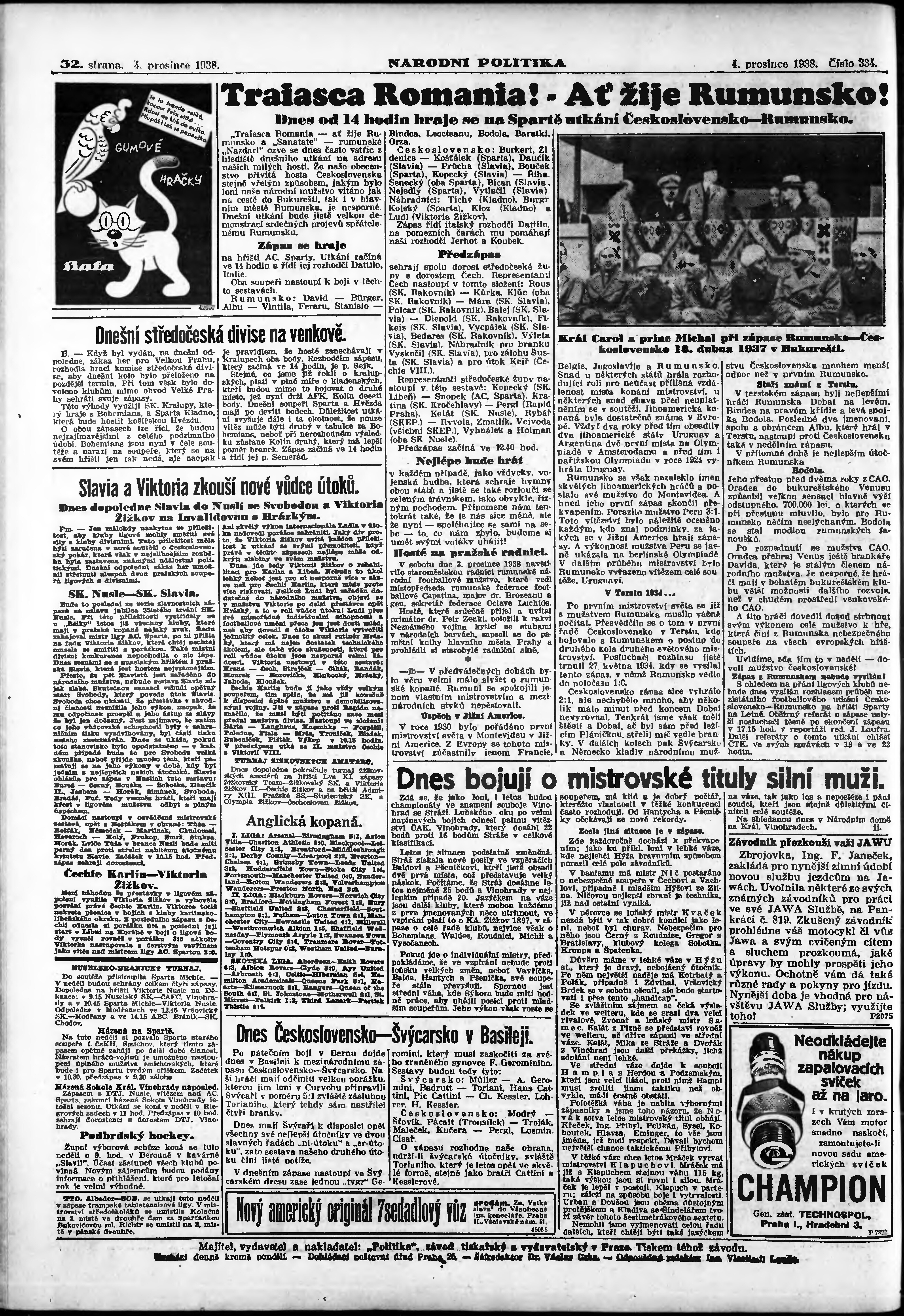 * Datum vydání výtisku: 4.12.1938 Číslo výtisku: 334 Poznámky k výtisku: ranní vydání;