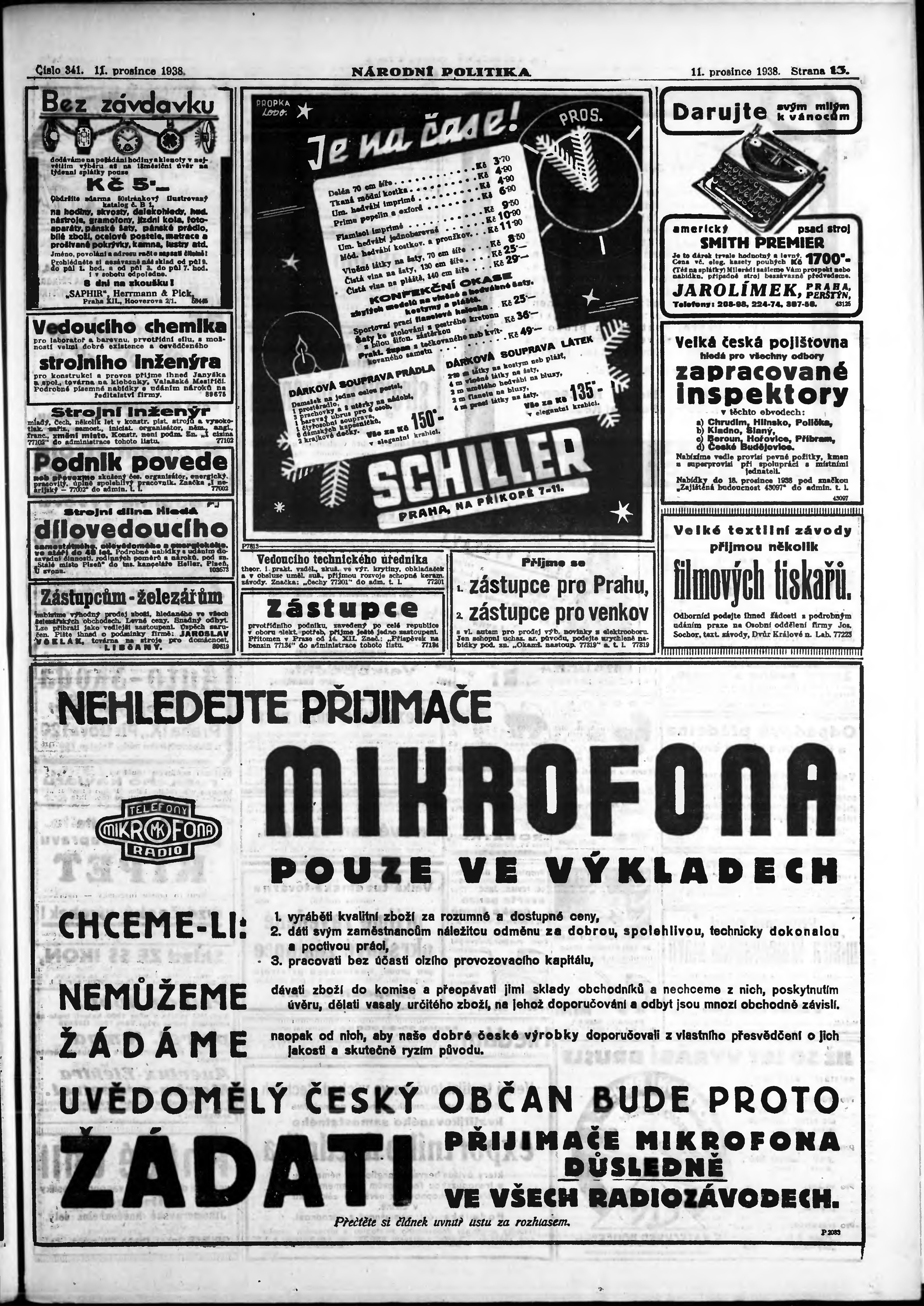 * Datum vydání výtisku: 11.12.1938 Číslo výtisku: 341 Poznámky k výtisku: ranní vydání;