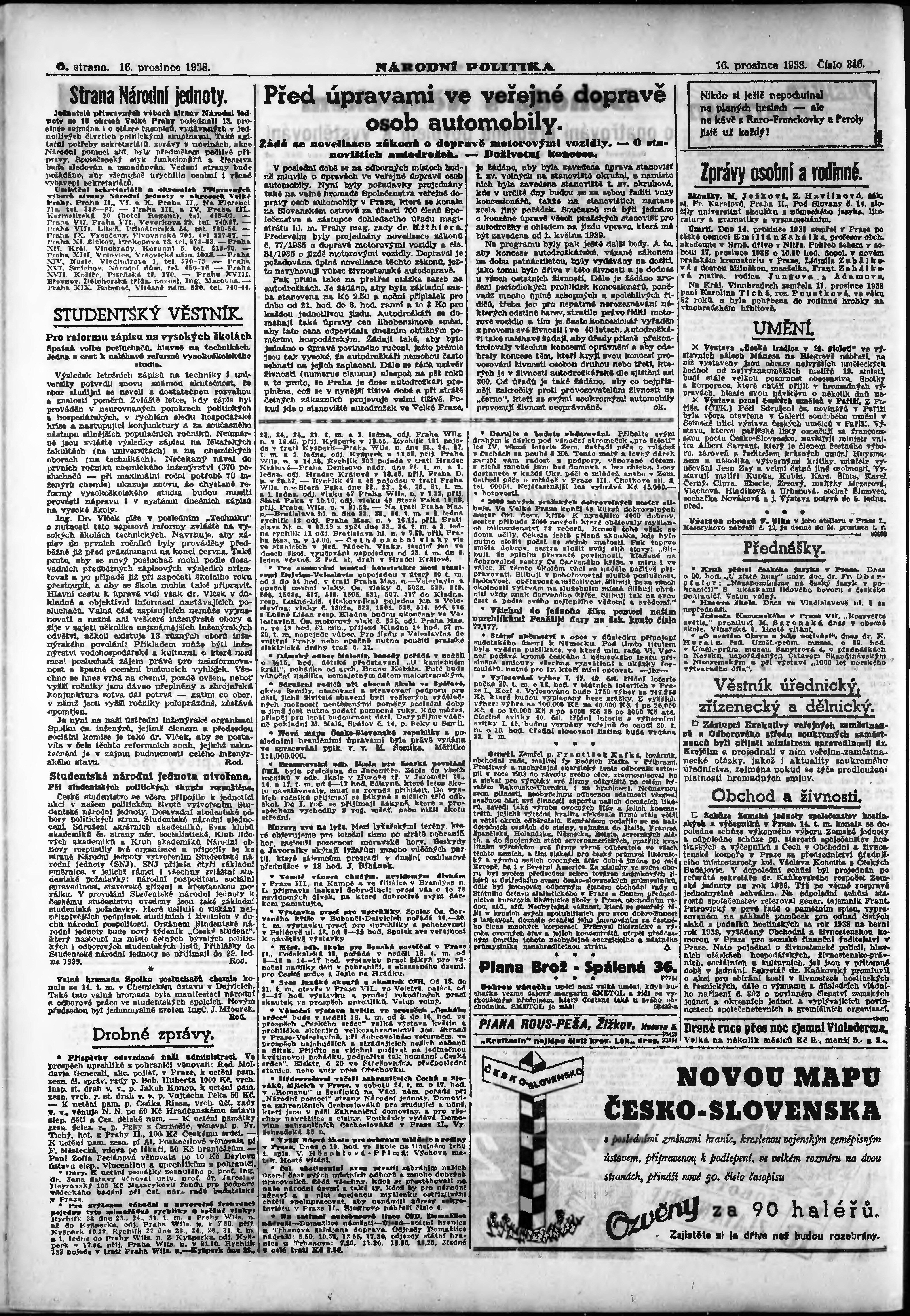 * Datum vydání výtisku: 16.12.1938 Číslo výtisku: 346 Poznámky k výtisku: ranní vydání; vydání pro Prahu;