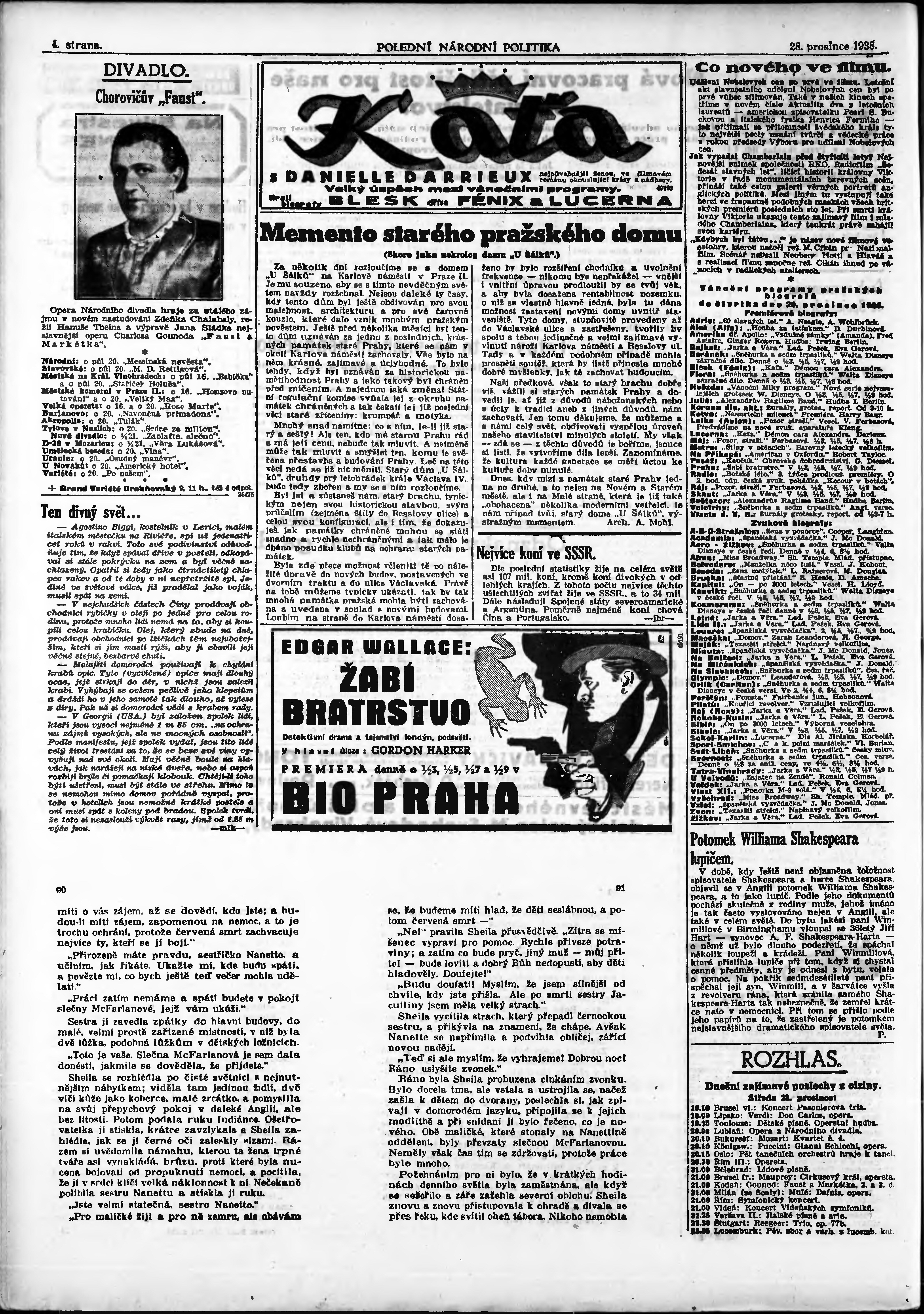* Datum vydání výtisku: 28.12.1938 Číslo výtisku: 357 Poznámky k výtisku: polední vydání;