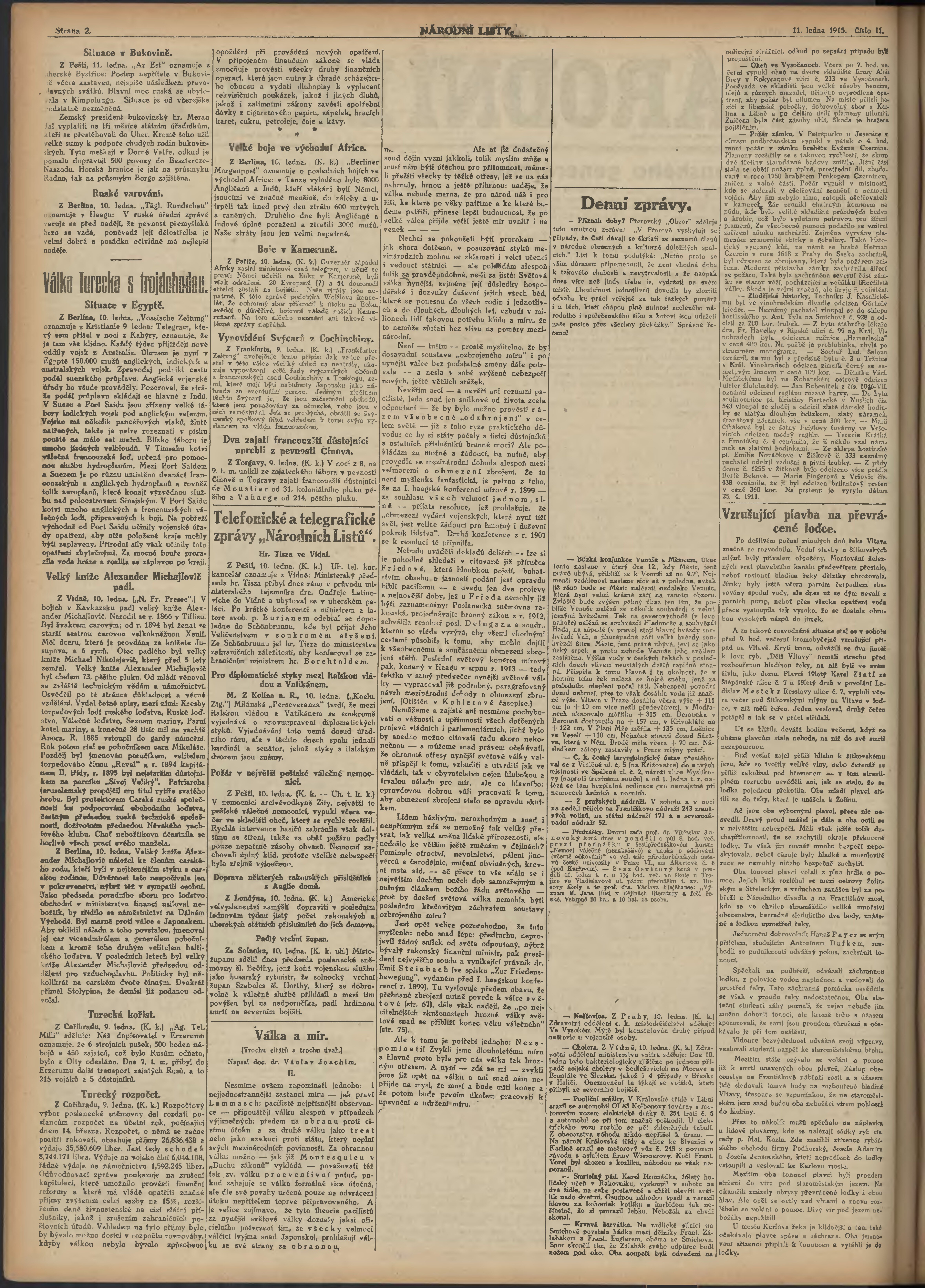 * Datum vydání výtisku: 11.1.1915 Číslo výtisku: 11 Poznámky k výtisku: ranní vydání;