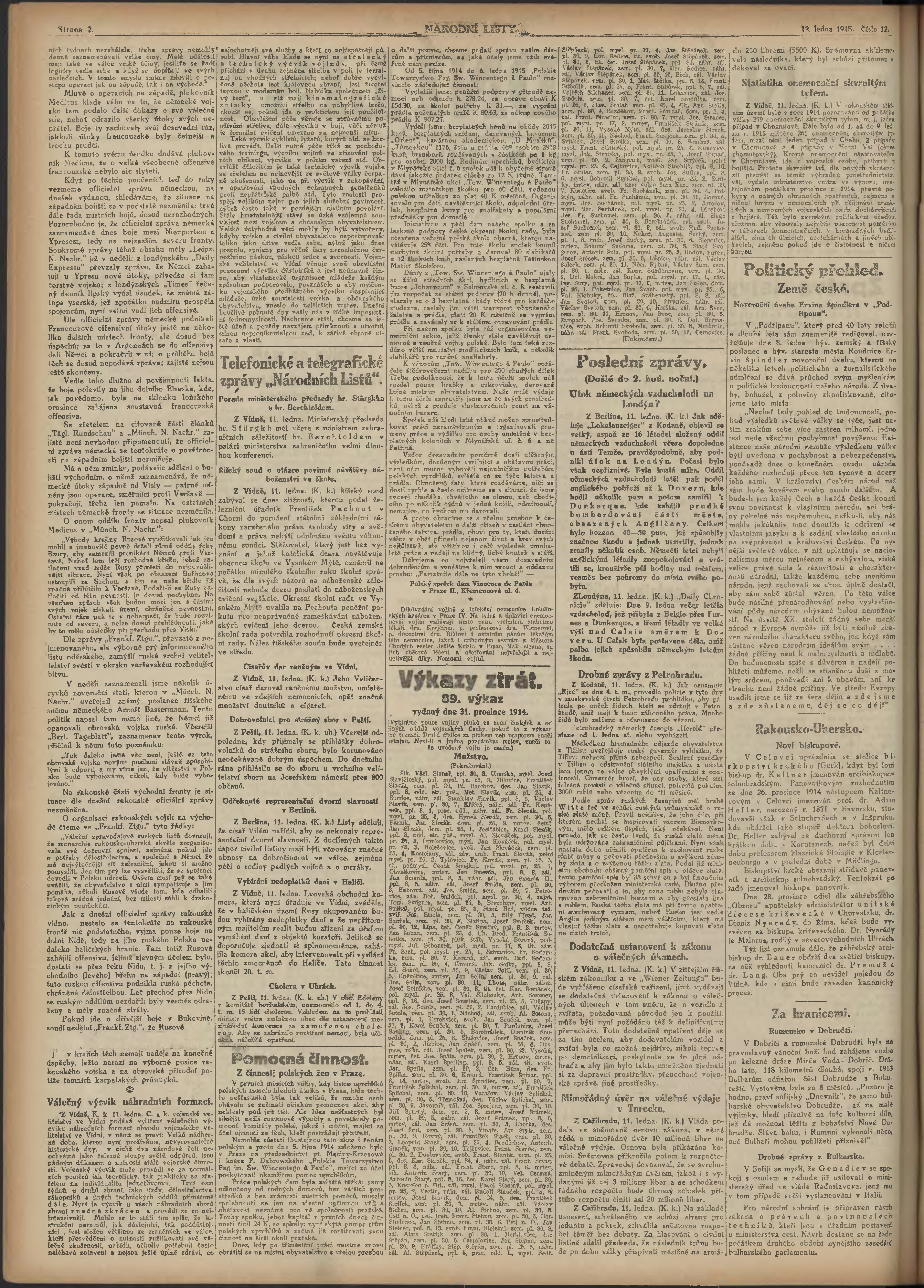 * Datum vydání výtisku: 12.1.1915 Číslo výtisku: 12 Poznámky k výtisku: ranní vydání; 2.vydání pro Prahu;