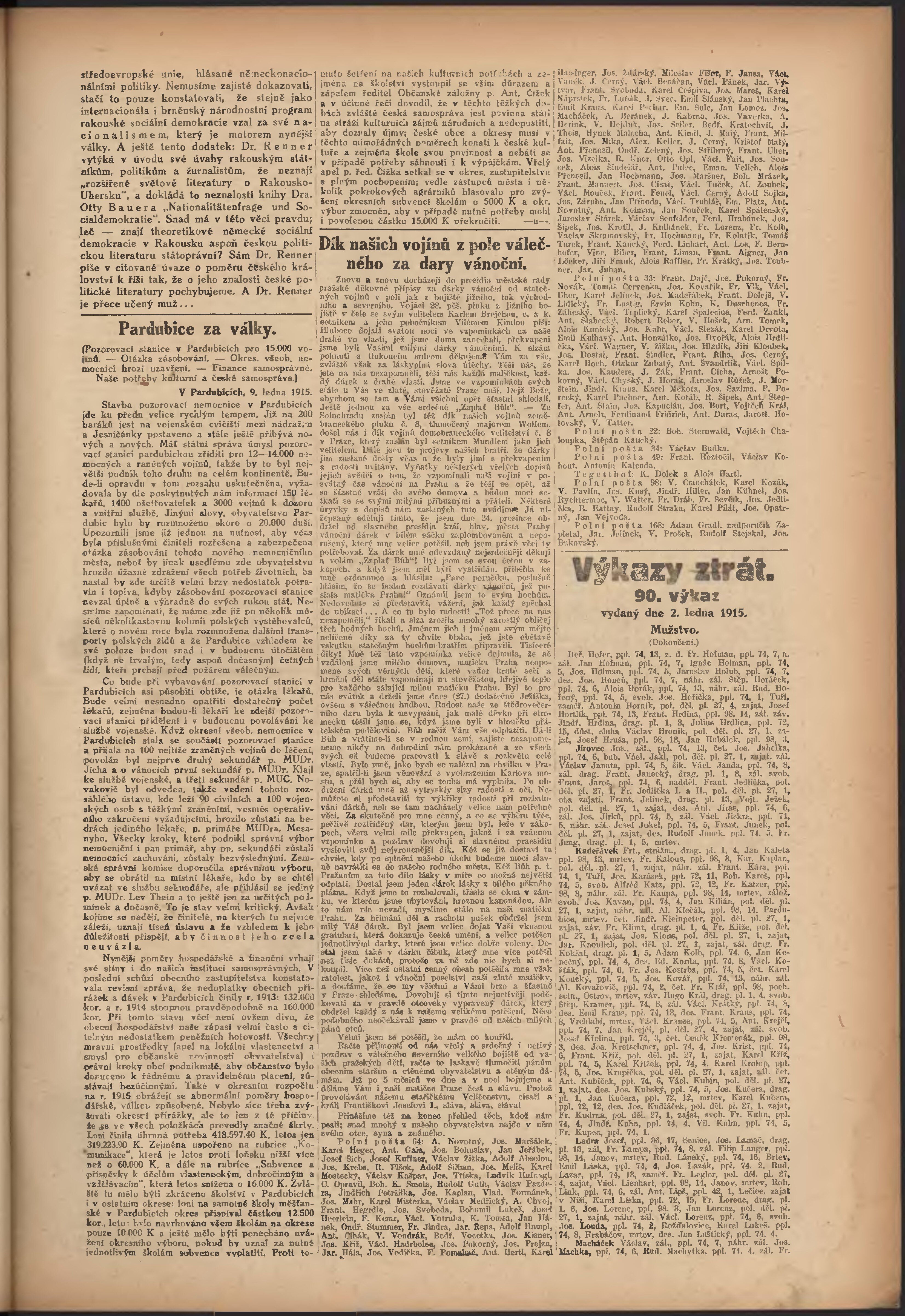 * Datum vydání výtisku: 13.1.1915 Číslo výtisku: 13 Poznámky k výtisku: večerní vydání;