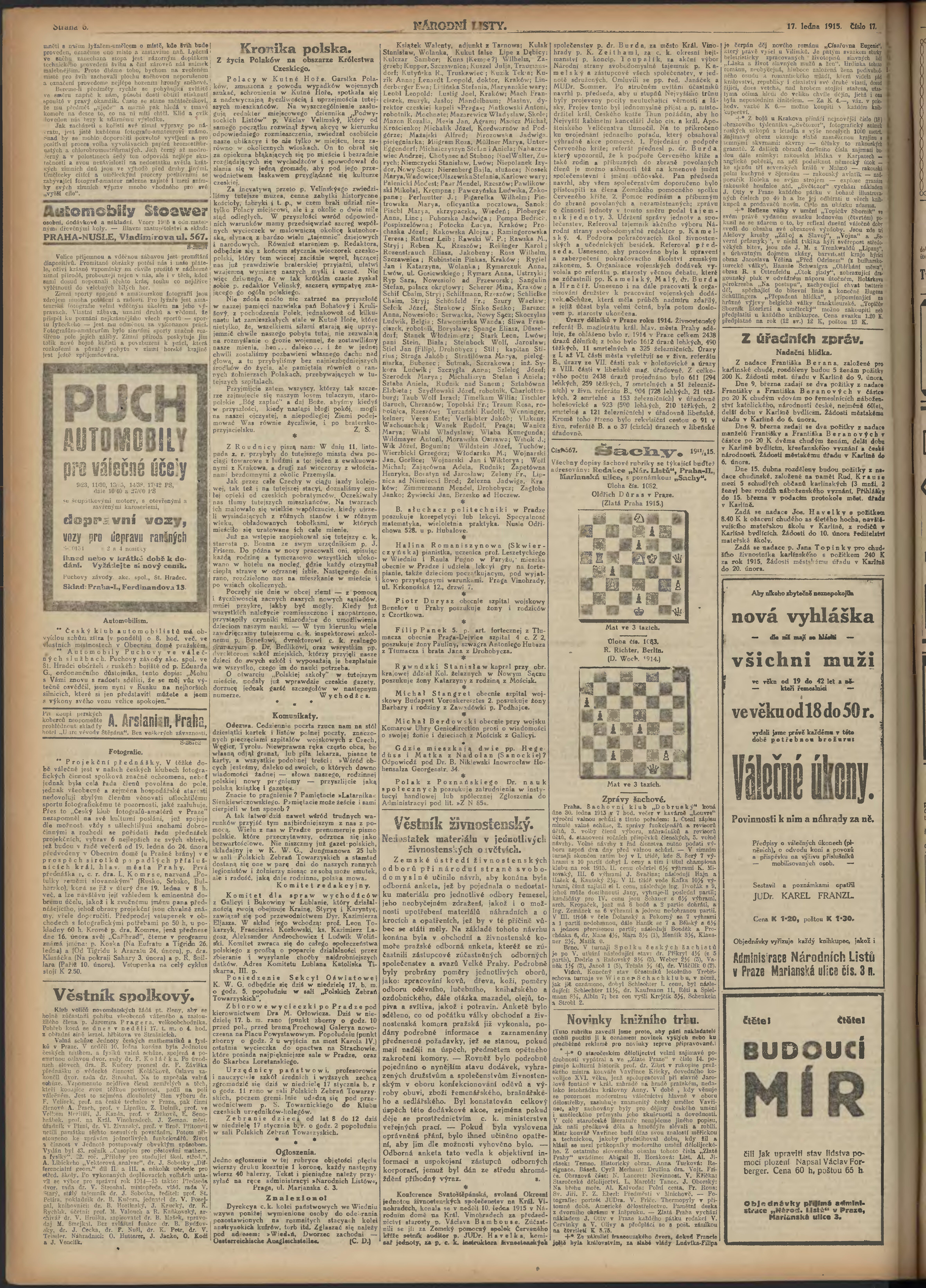 * Datum vydání výtisku: 17.1.1915 Číslo výtisku: 17 Poznámky k výtisku: ranní vydání; 2.vydání pro Prahu;