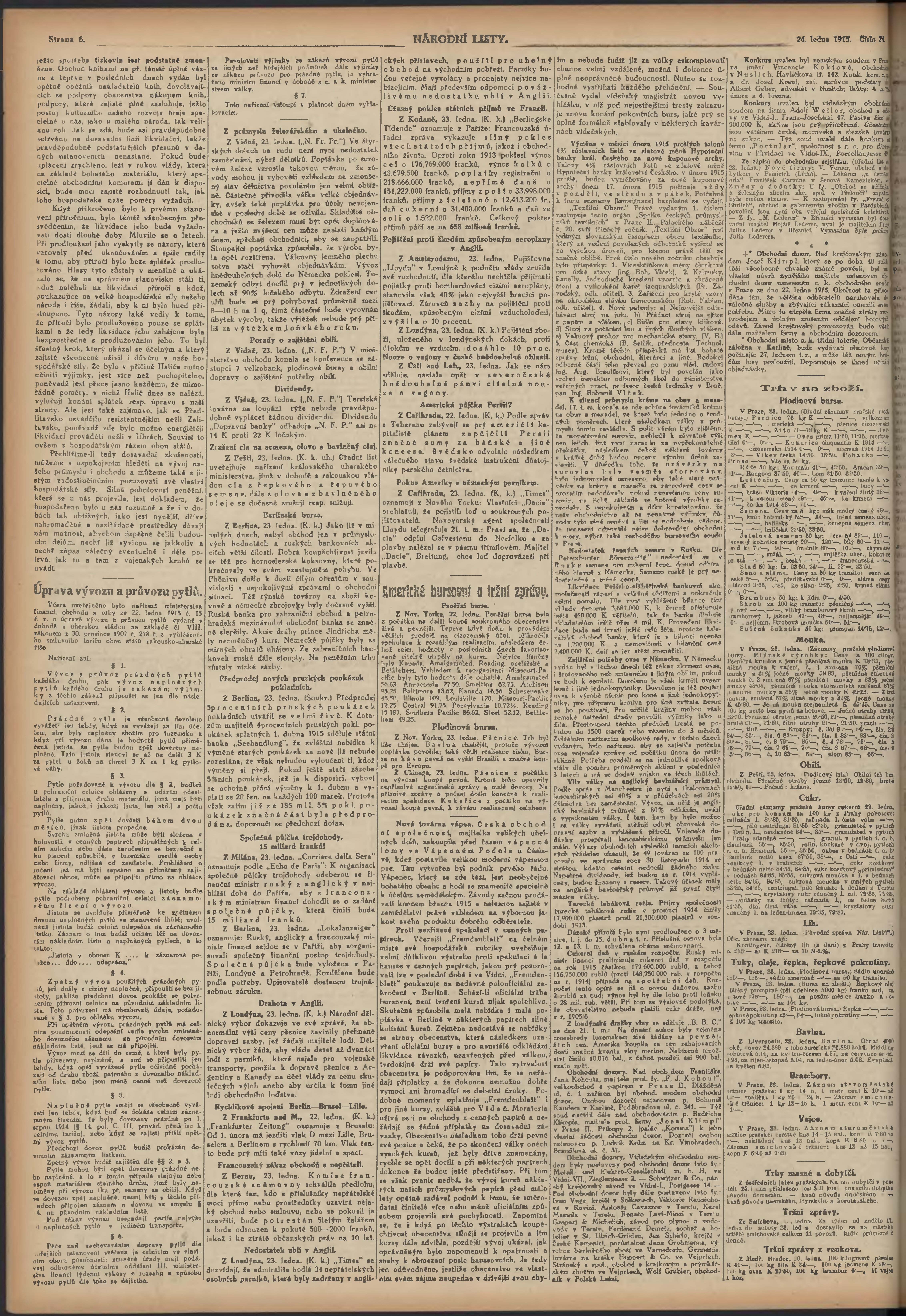 * Datum vydání výtisku: 24.1.1915 Číslo výtisku: 24 Poznámky k výtisku: ranní vydání; 2.vydání pro Prahu;