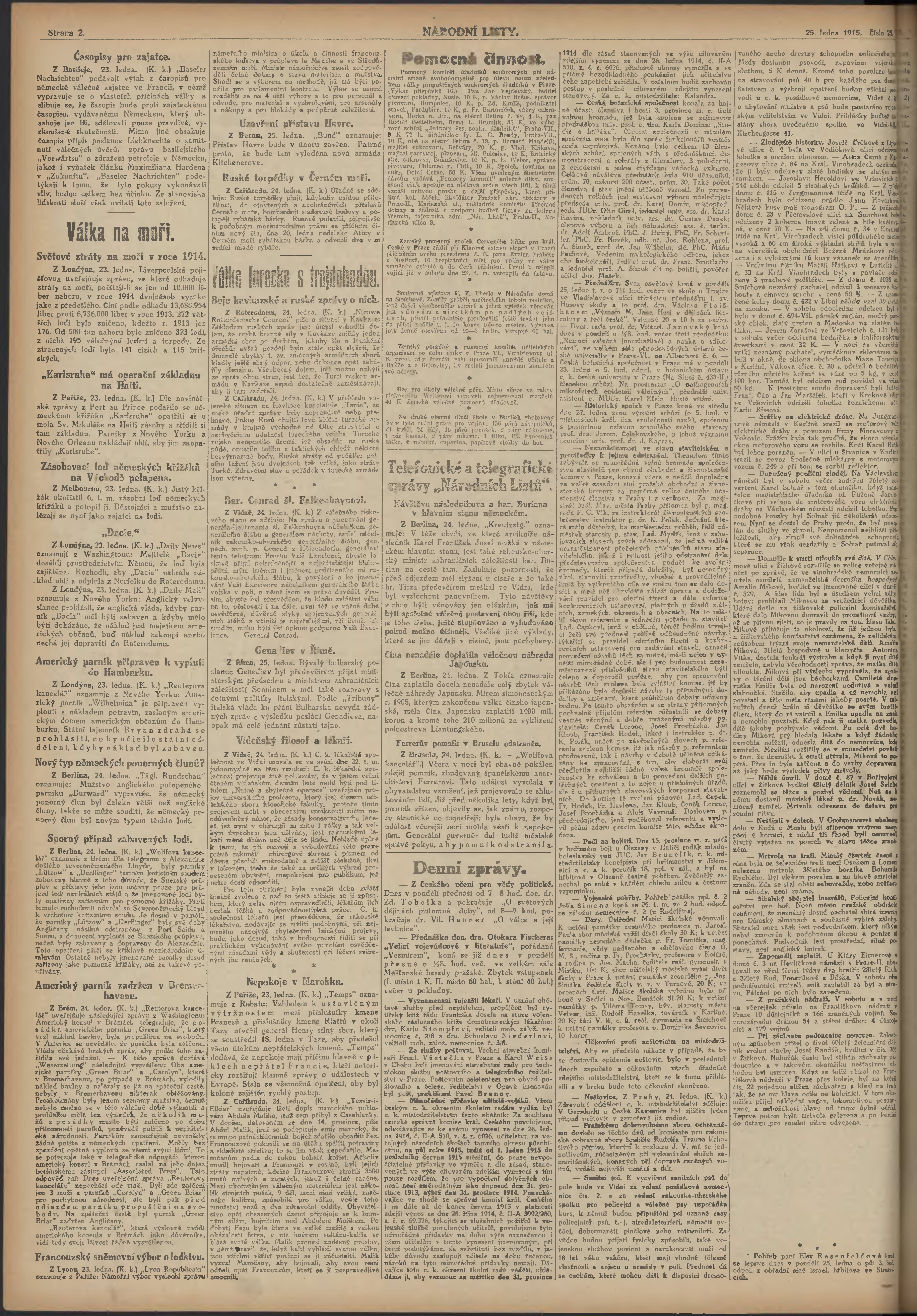 * Datum vydání výtisku: 25.1.1915 Číslo výtisku: 25 Poznámky k výtisku: ranní vydání;