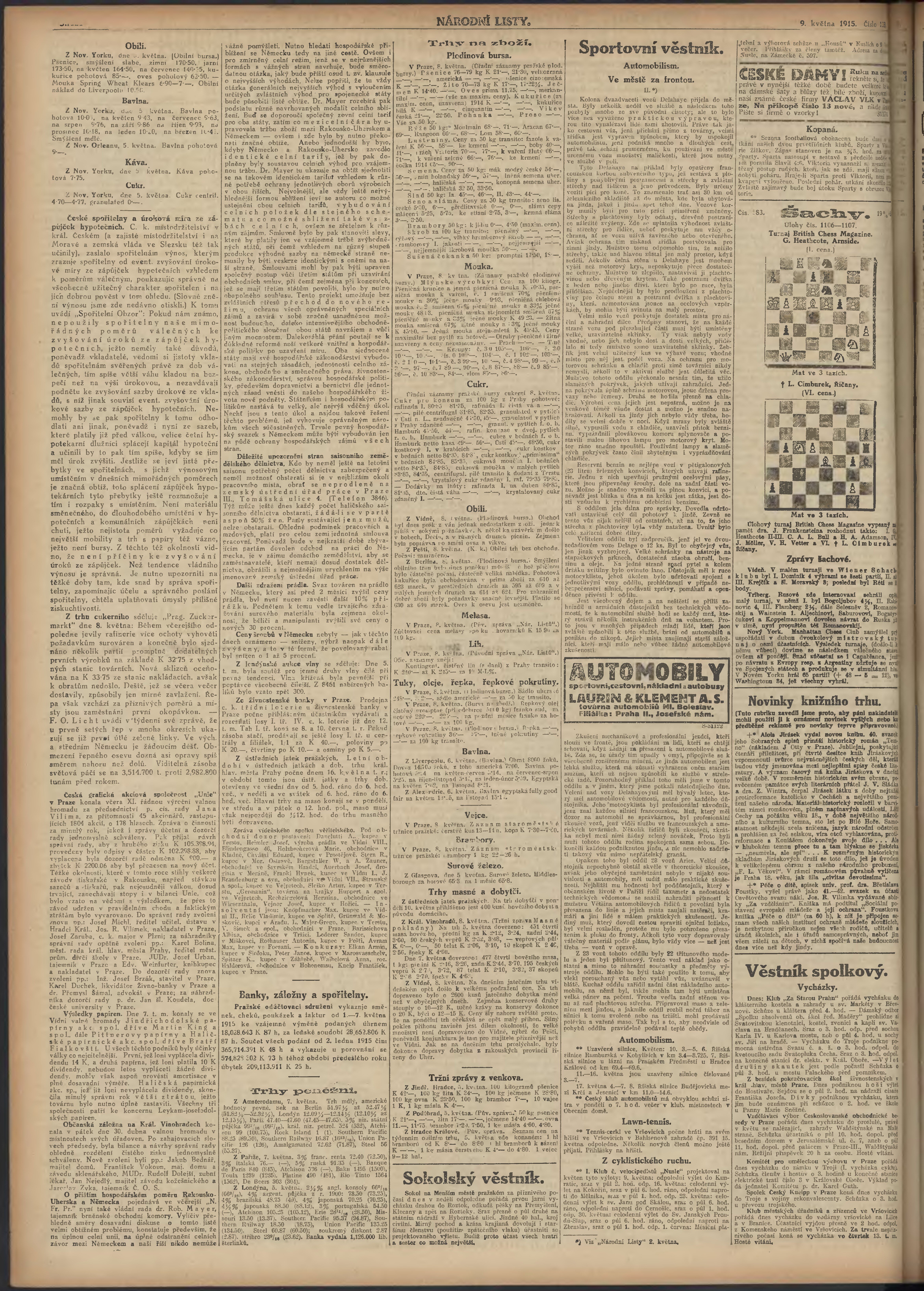 * Datum vydání výtisku: 9.5.1915 Číslo výtisku: 128 Poznámky k výtisku: ranní vydání; 2. vydání pro Prahu;