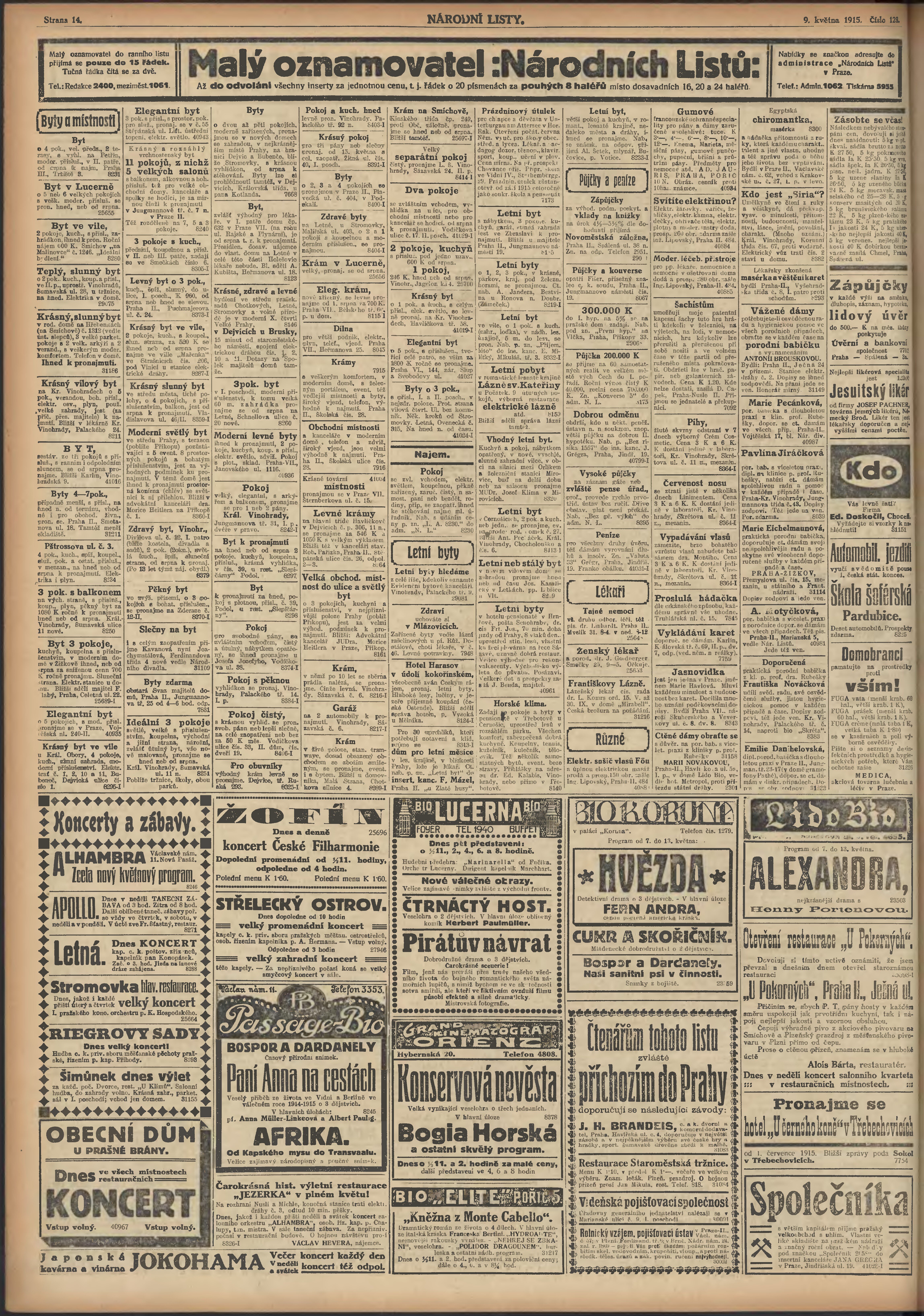 * Datum vydání výtisku: 9.5.1915 Číslo výtisku: 128 Poznámky k výtisku: ranní vydání; 2. vydání pro Prahu;