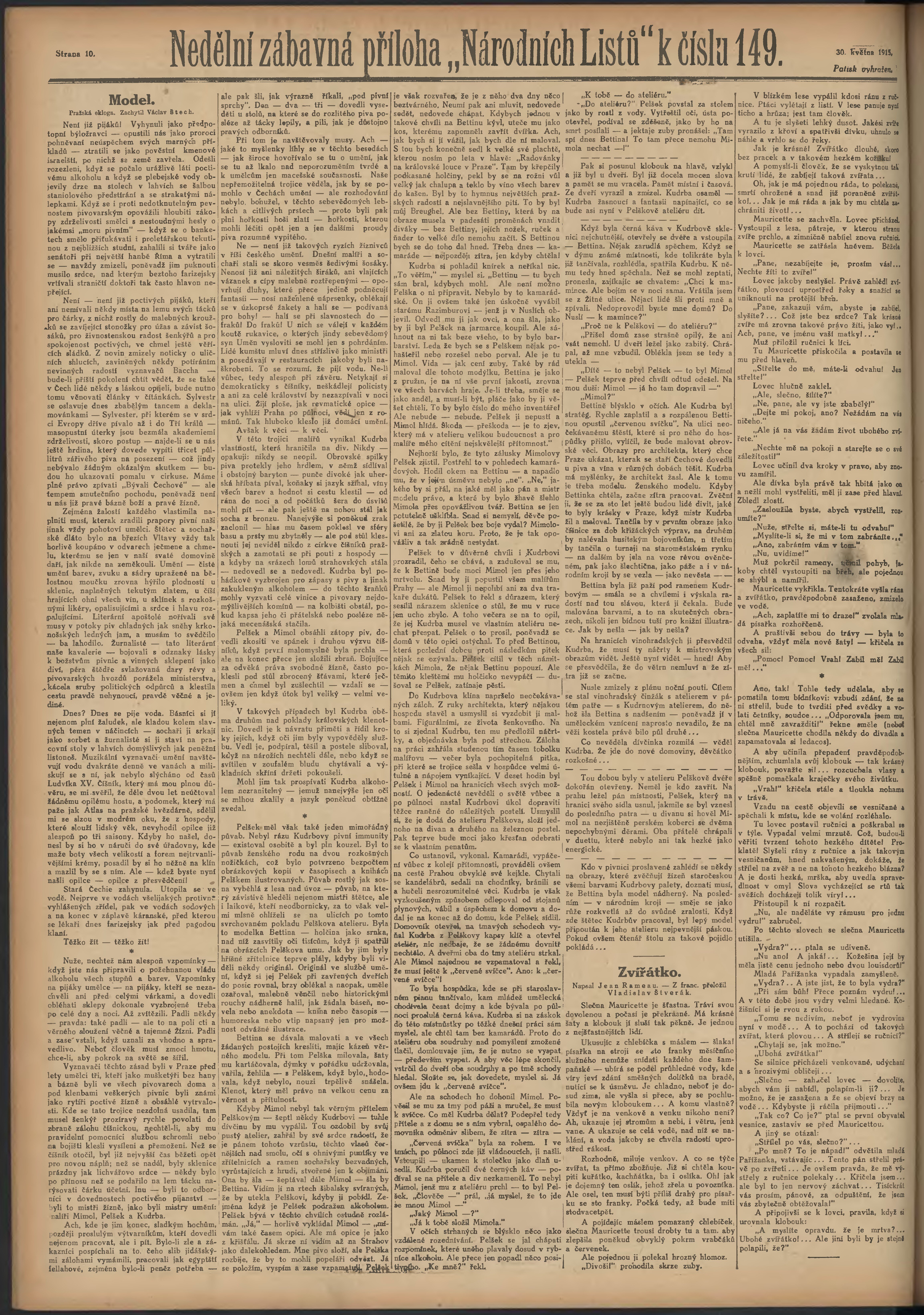 * Datum vydání výtisku: 30.5.1915 Číslo výtisku: 148 Poznámky k výtisku: ranní vydání; 2. vydání pro Prahu;