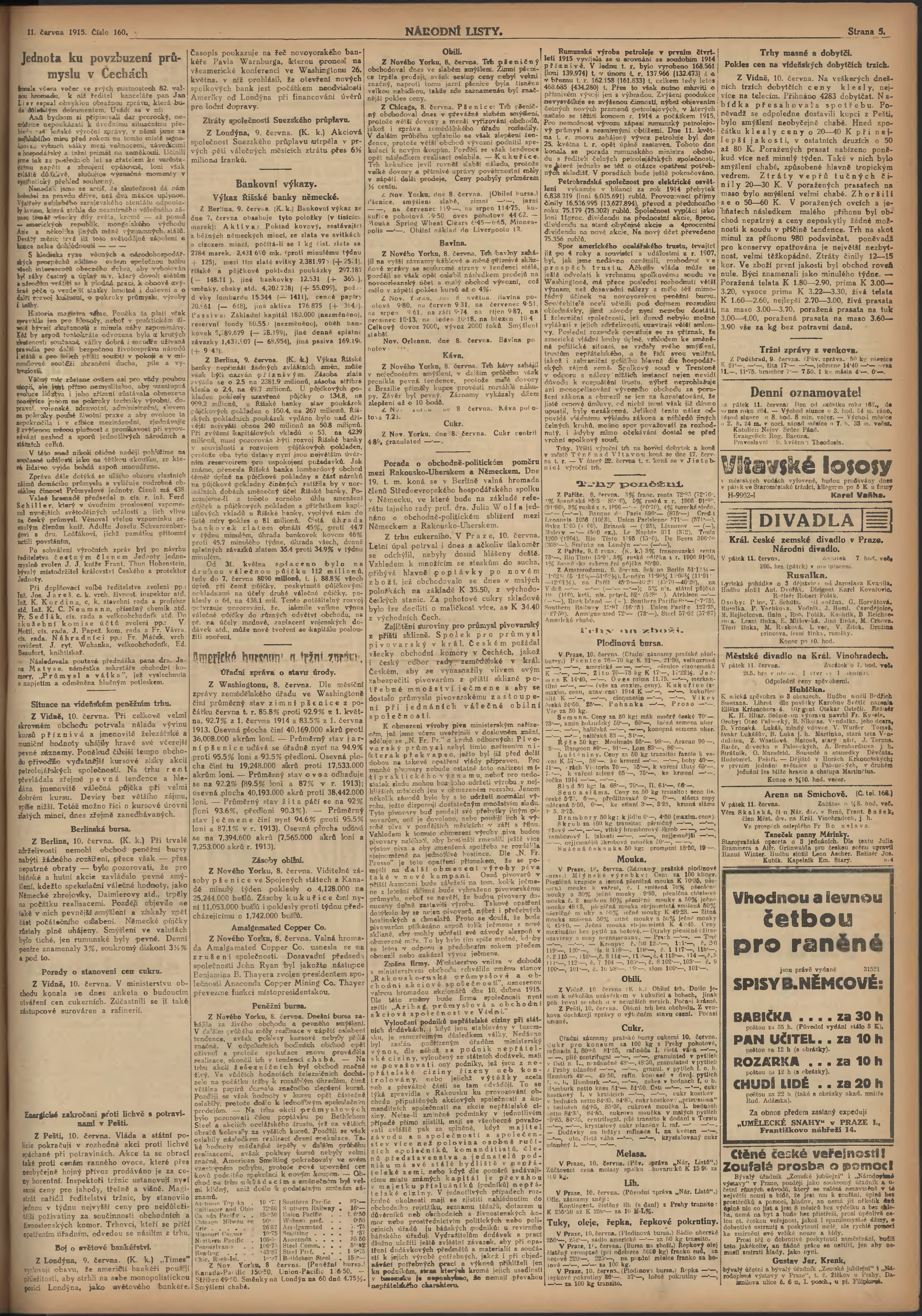 * Datum vydání výtisku: 11.6.1915 Číslo výtisku: 160 Poznámky k výtisku: ranní vydání; 2. vydání pro Prahu;