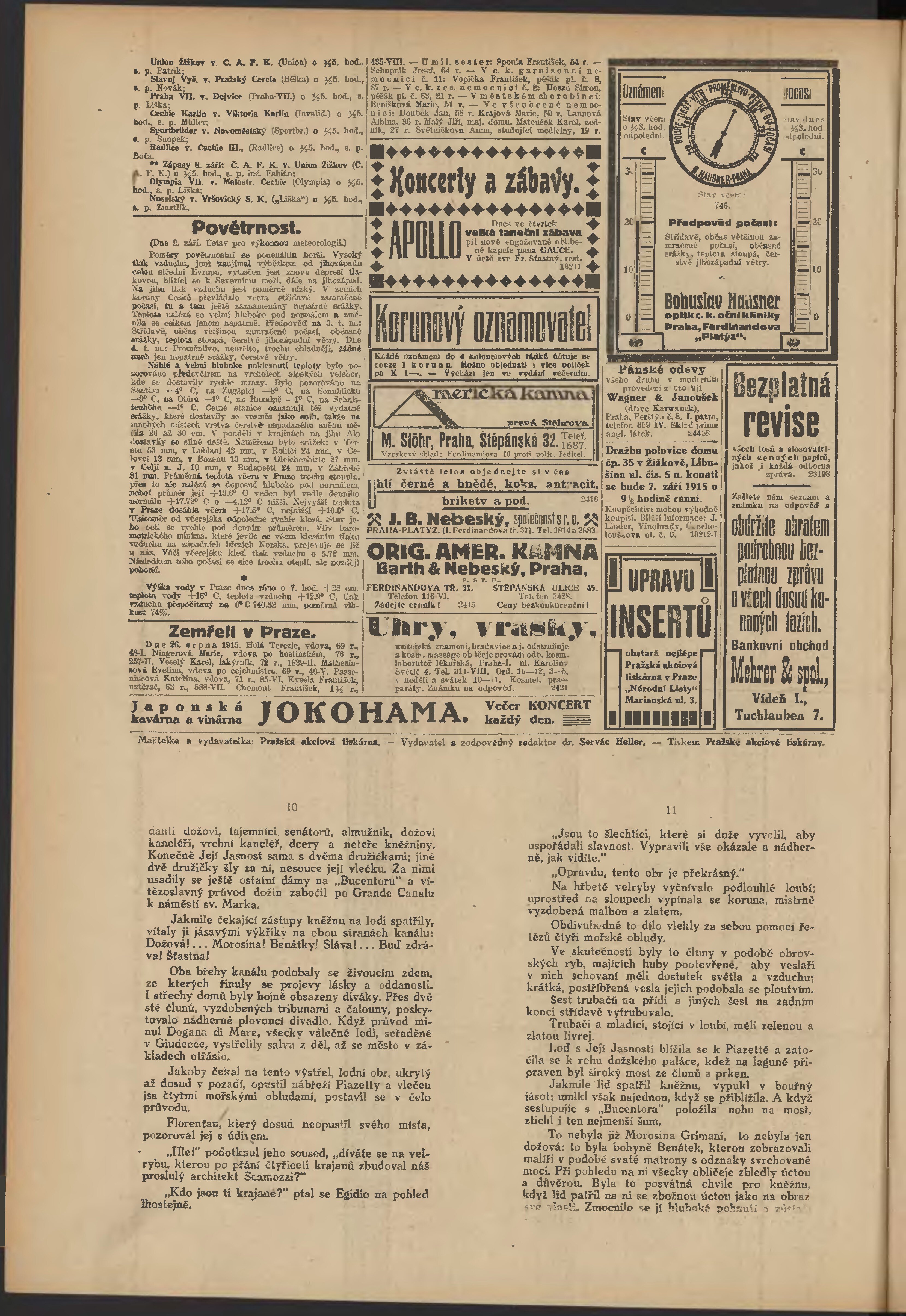 * Datum vydání výtisku: 2.9.1915 Číslo výtisku: 243 Poznámky k výtisku: večerní vydání;