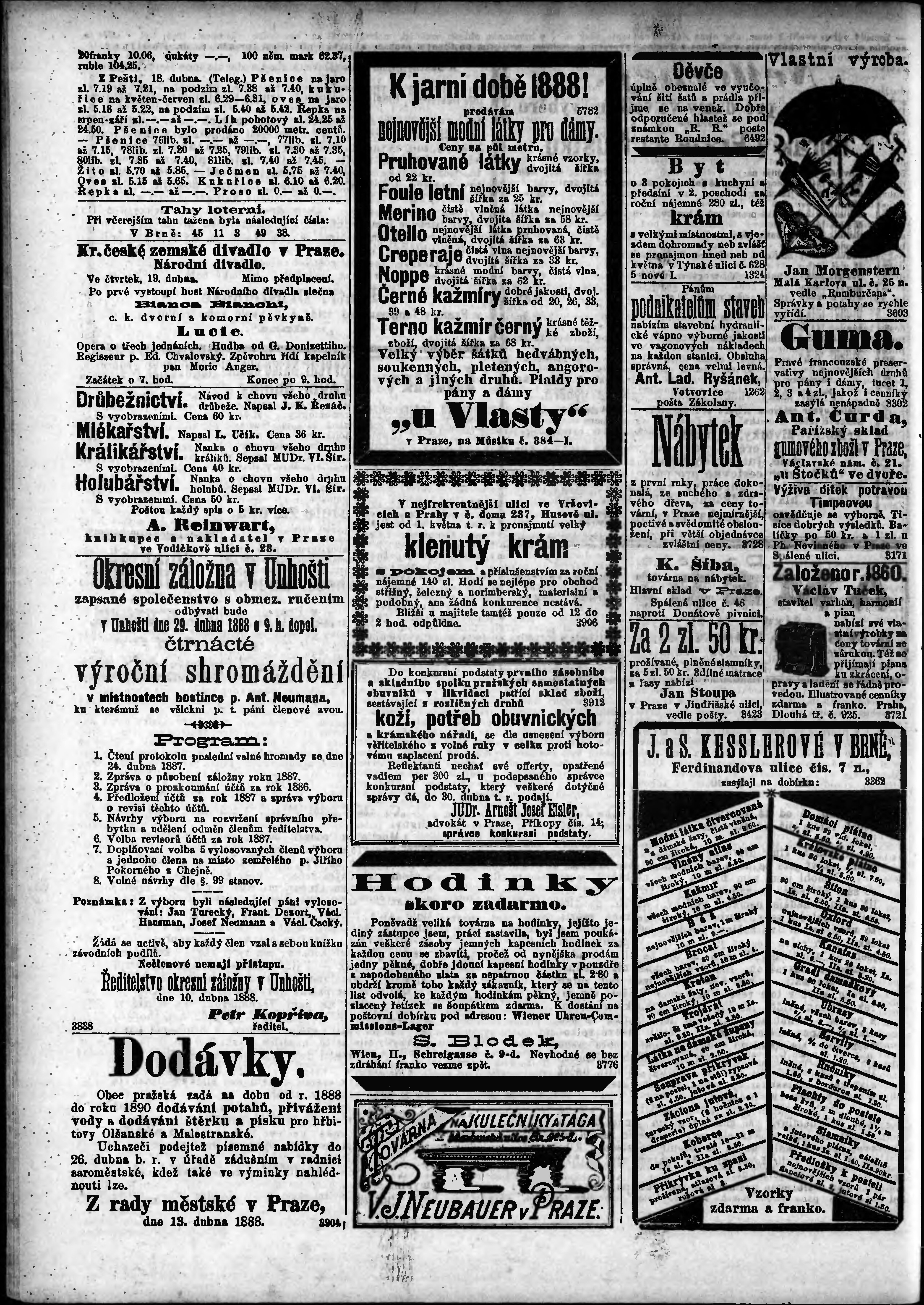 * Datum vydání výtisku: 19.4.1888 Číslo výtisku: 109