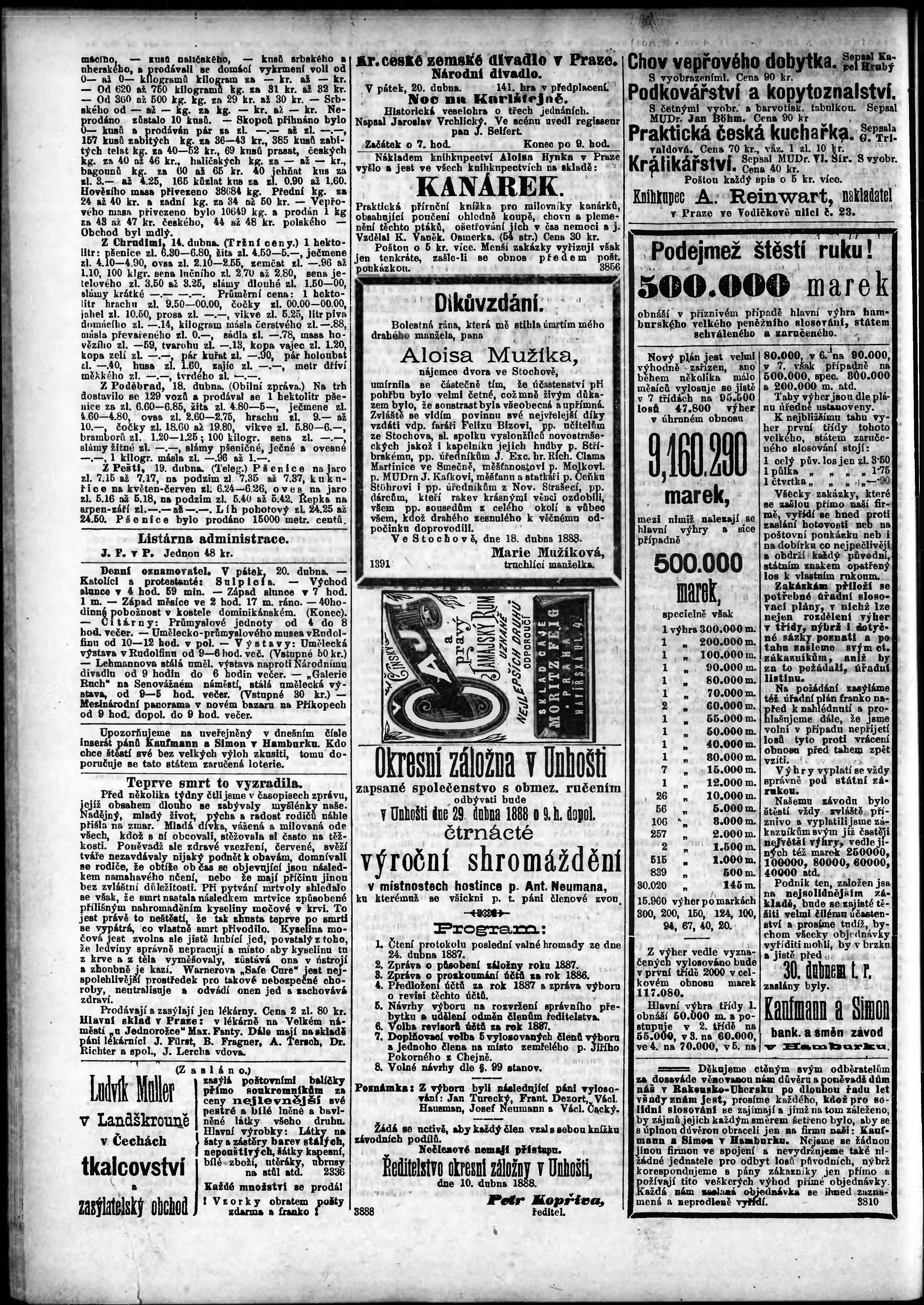 * Datum vydání výtisku: 20.4.1888 Číslo výtisku: 110
