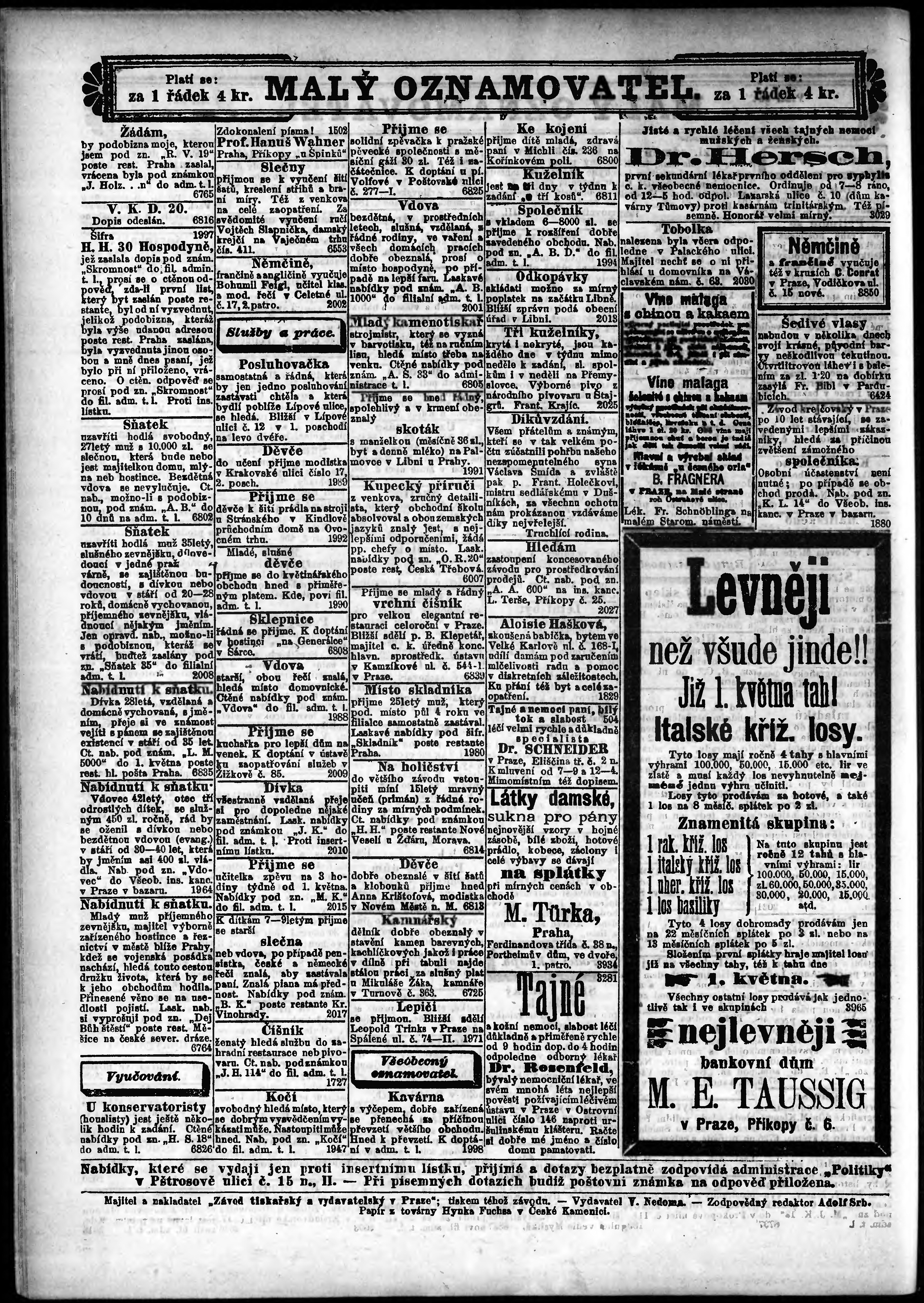 * Datum vydání výtisku: 27.4.1888 Číslo výtisku: 117