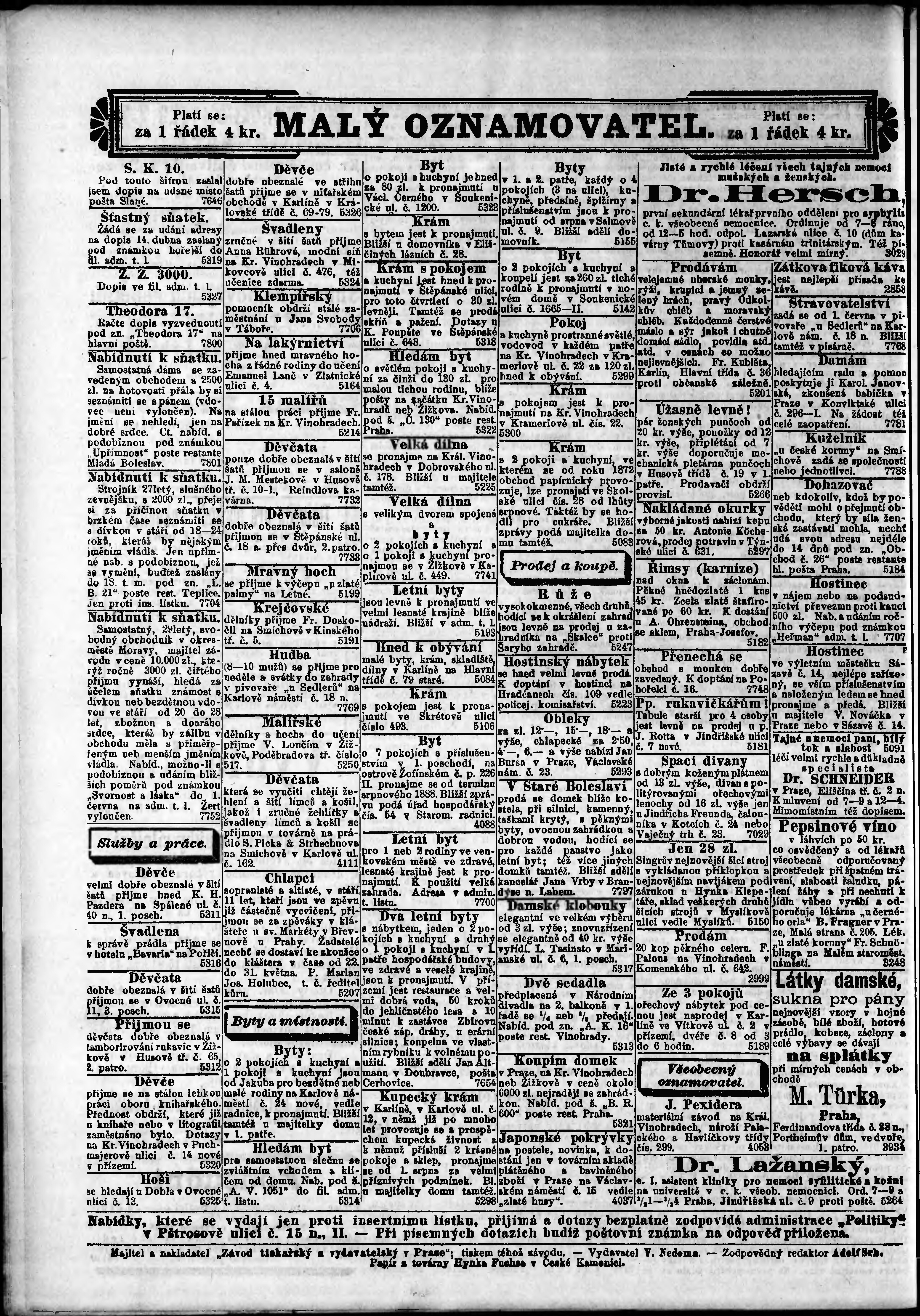* Datum vydání výtisku: 11.5.1888 Číslo výtisku: 131