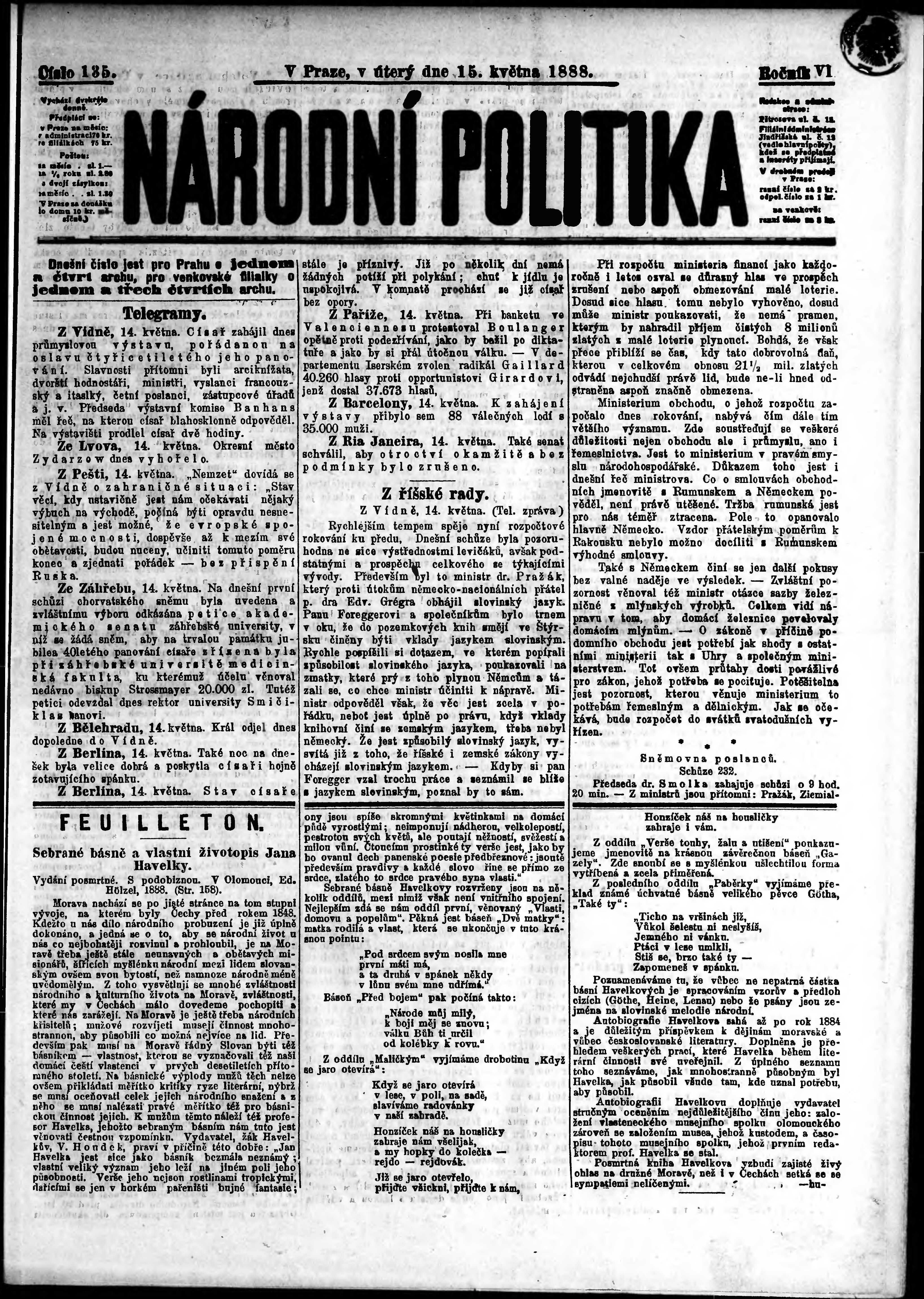 * Datum vydání výtisku: 15.5.1888 Číslo výtisku: 135