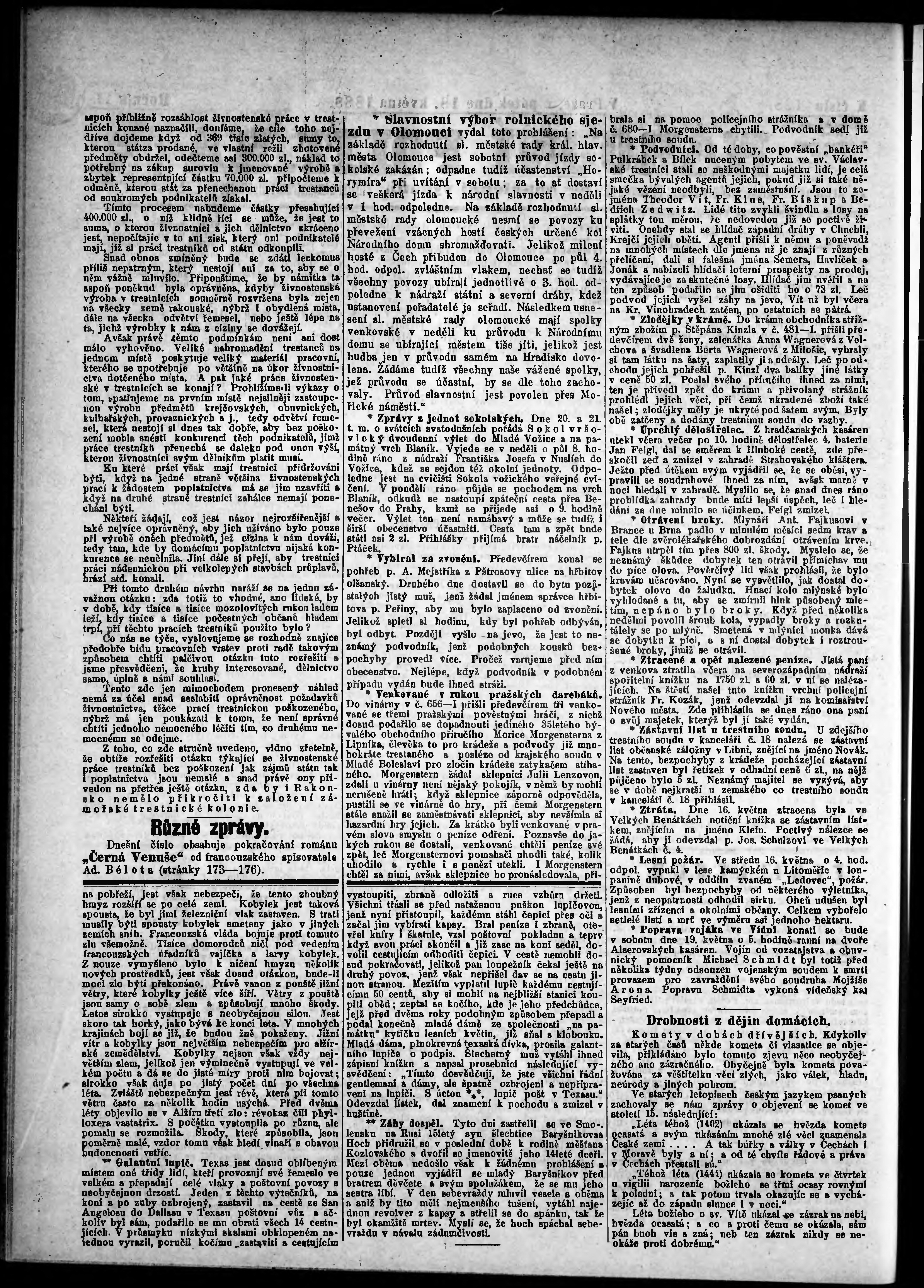 * Datum vydání výtisku: 18.5.1888 Číslo výtisku: 138 Poznámky k výtisku: odpolední vydání;