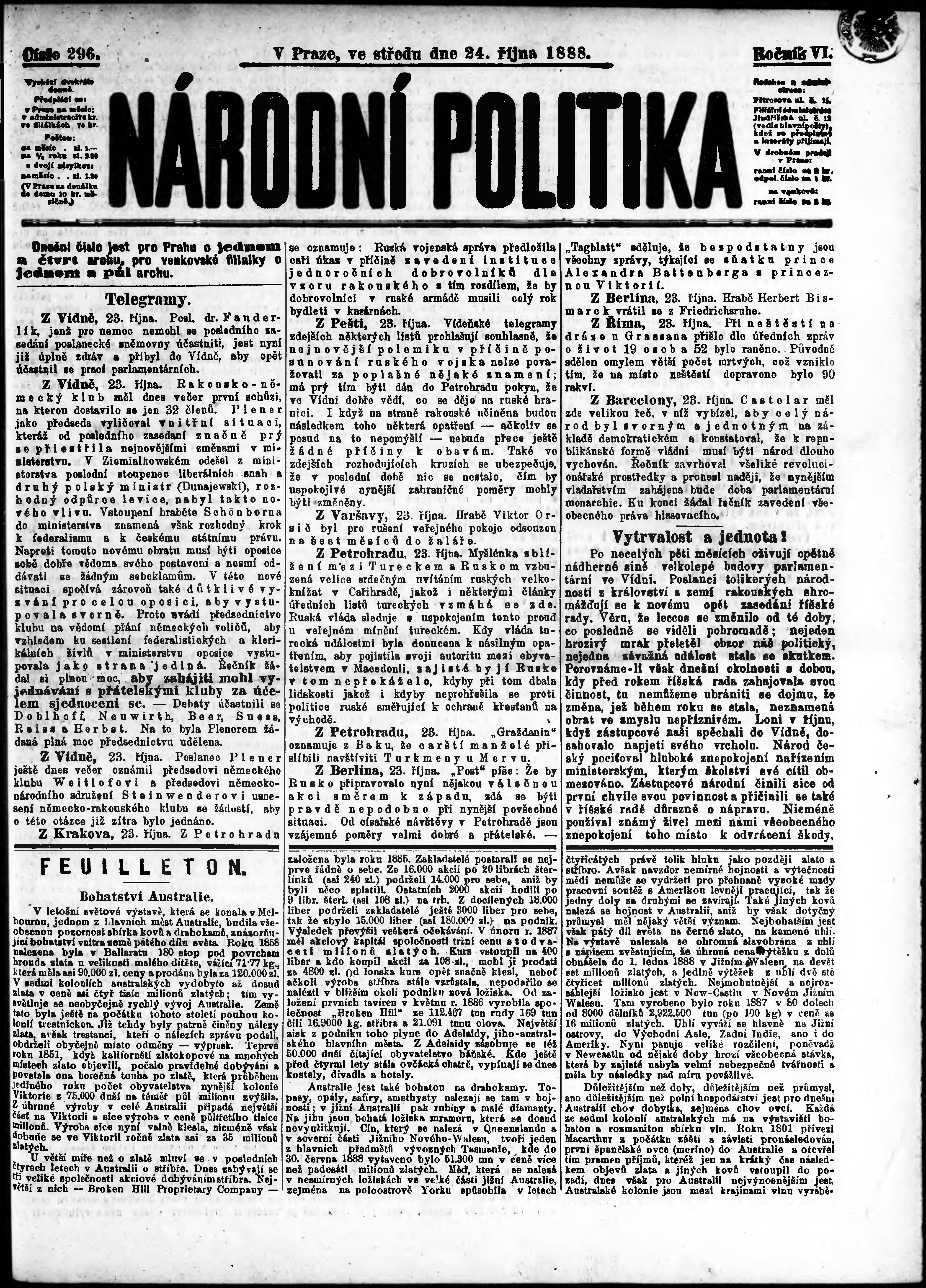 * Datum vydání výtisku: 24.10.1888 Číslo výtisku: 296
