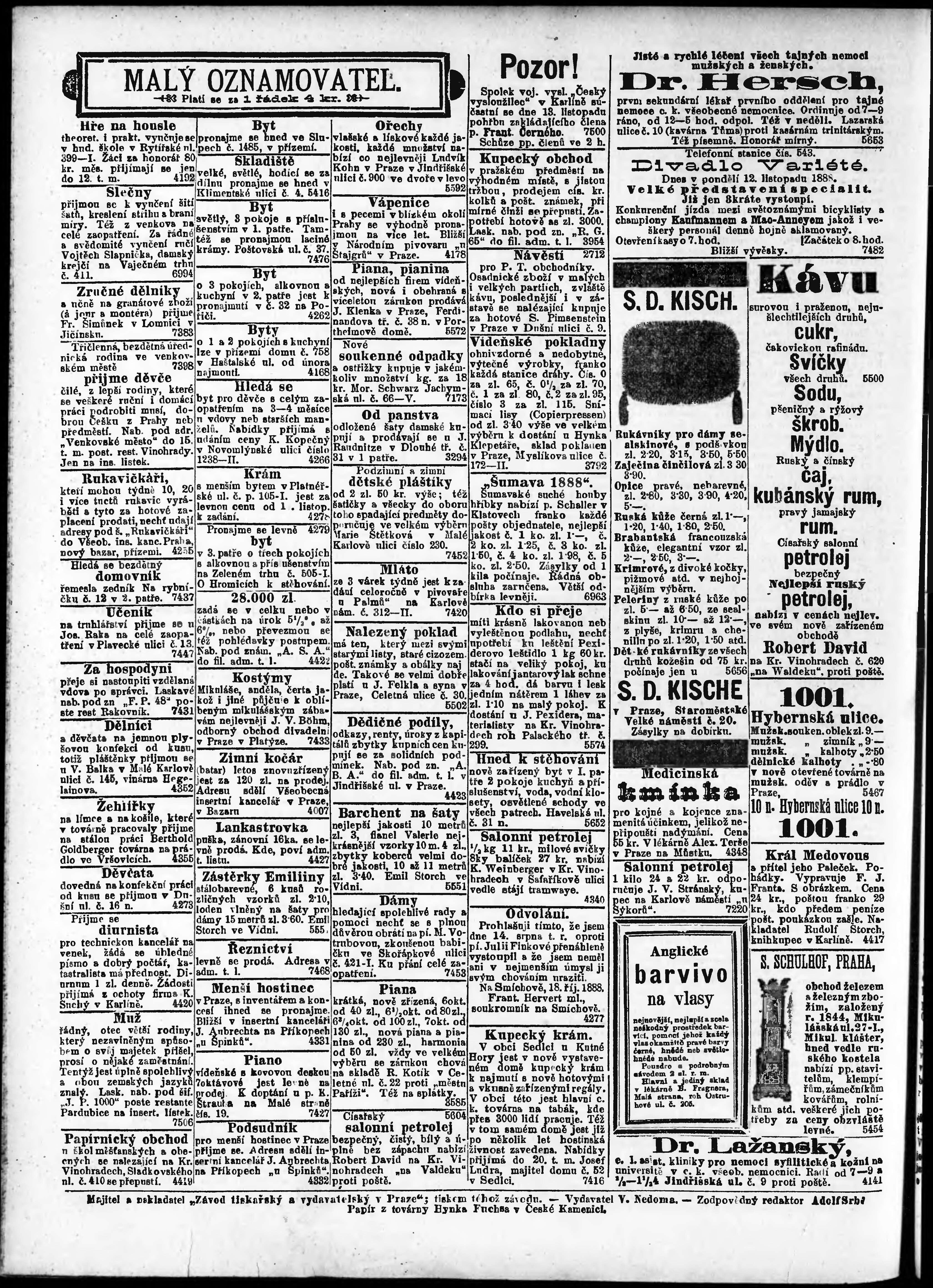 * Datum vydání výtisku: 12.11.1888 Číslo výtisku: 315