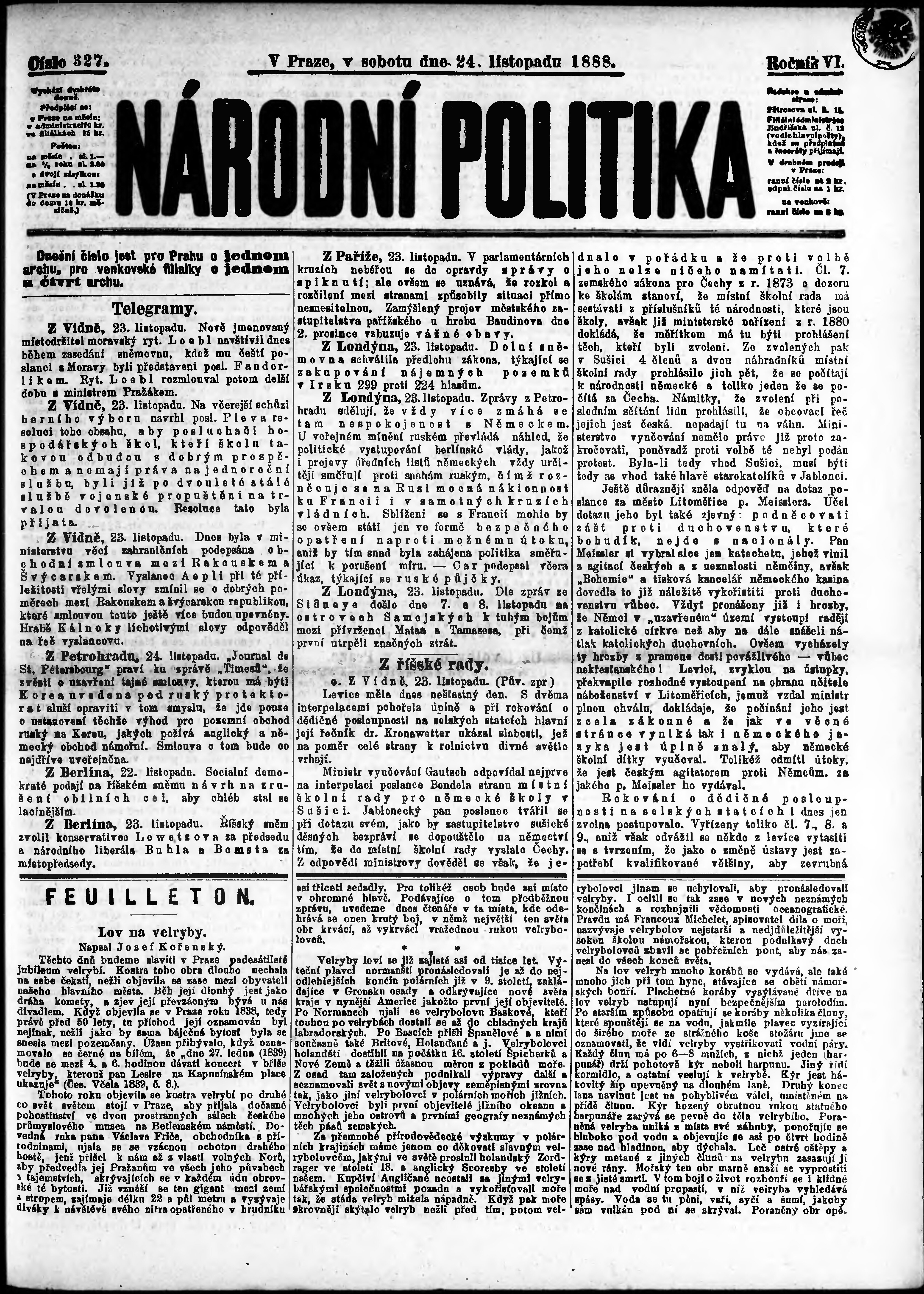 * Datum vydání výtisku: 24.11.1888 Číslo výtisku: 327