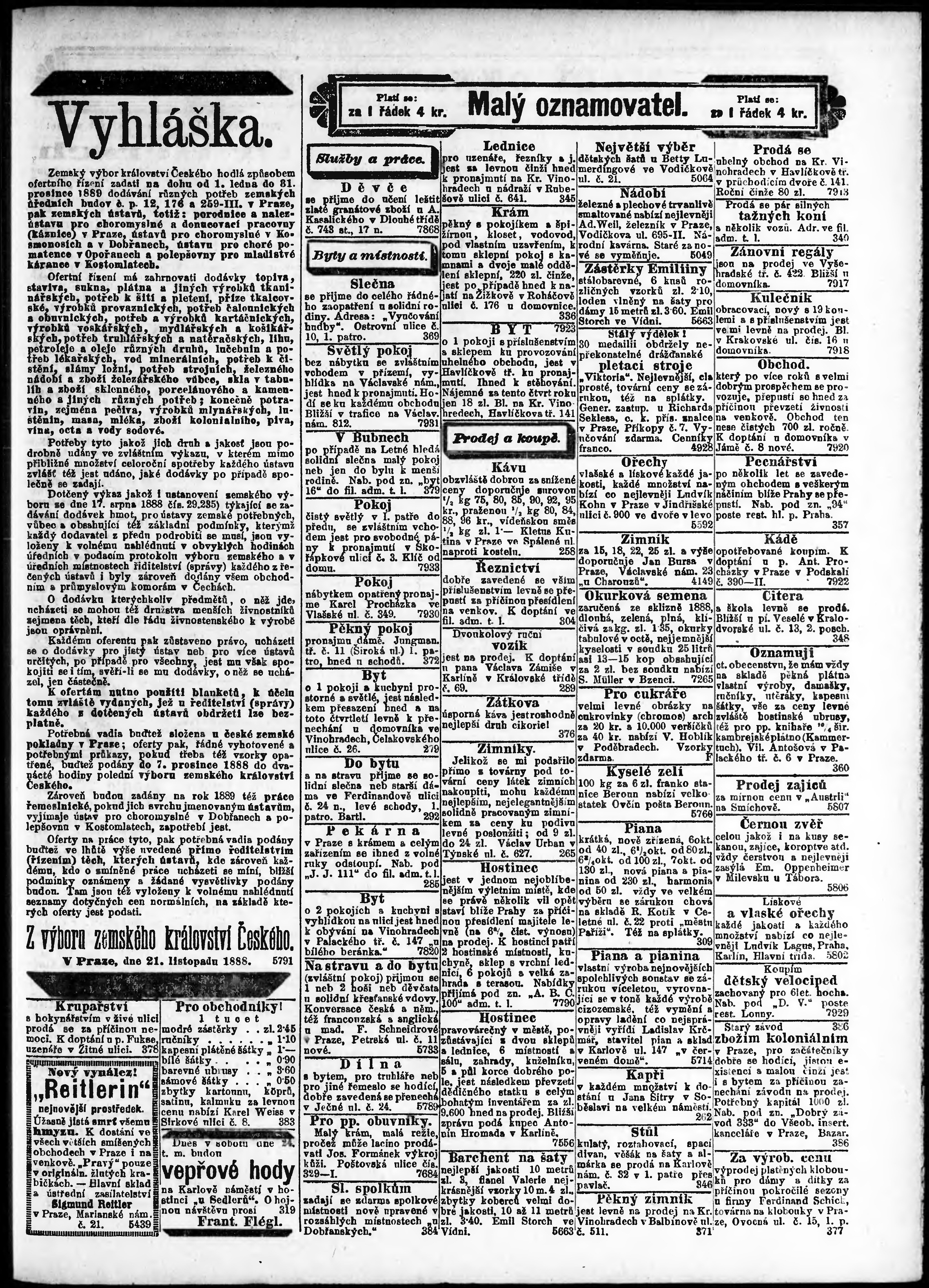 * Datum vydání výtisku: 24.11.1888 Číslo výtisku: 327