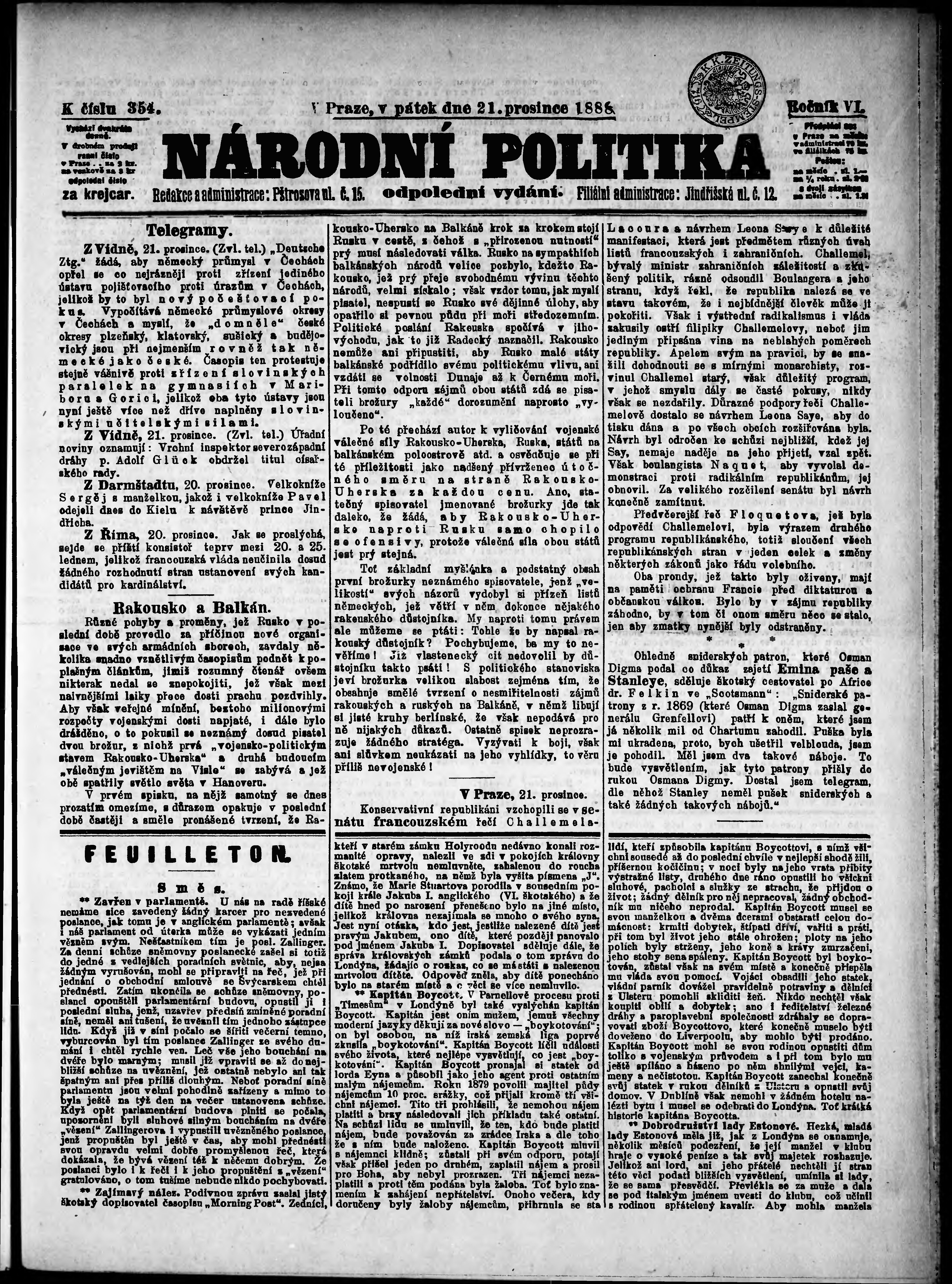 * Datum vydání výtisku: 21.12.1888 Číslo výtisku: 354 Poznámky k výtisku: odpolední vydání;