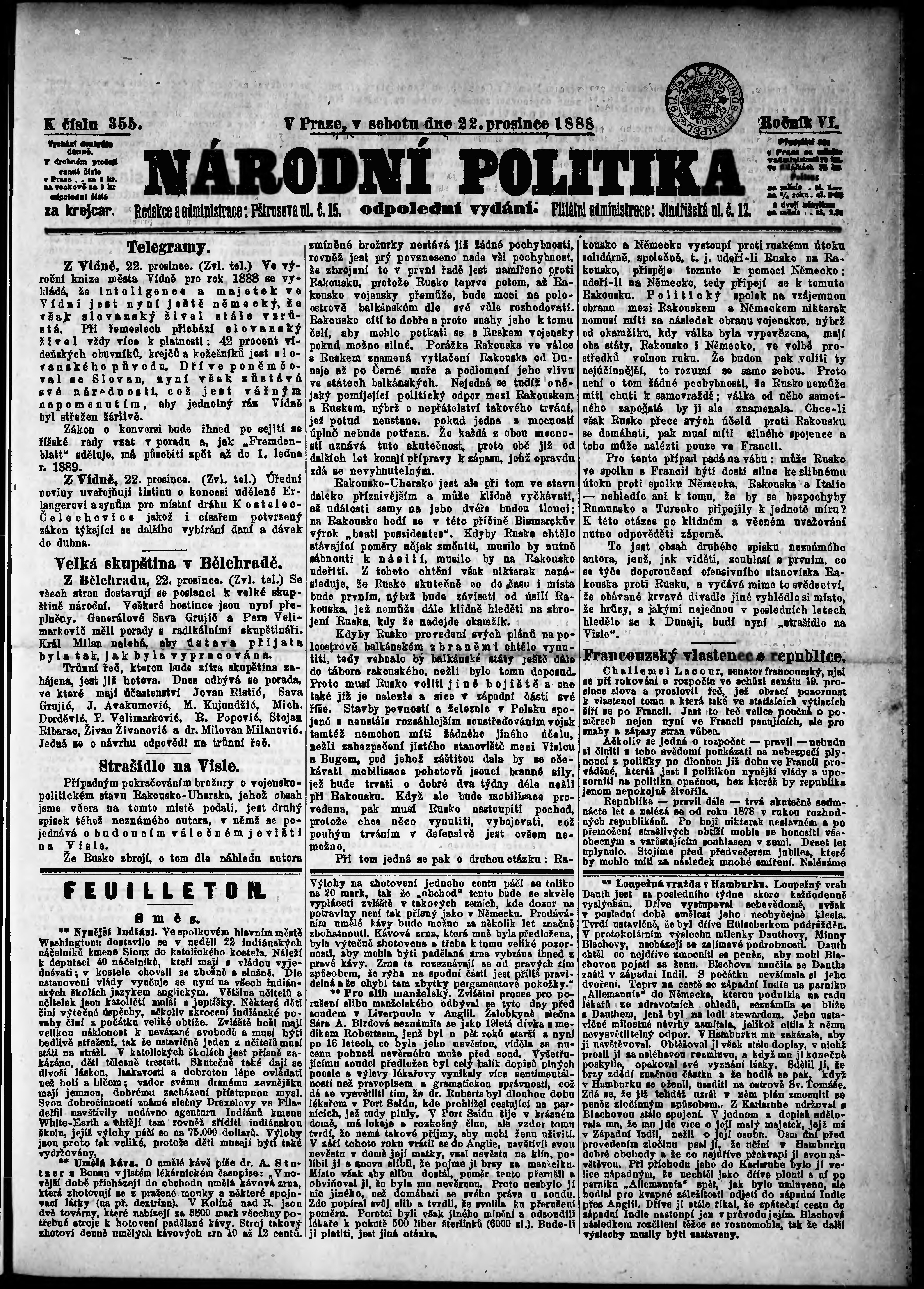 * Datum vydání výtisku: 22.12.1888 Číslo výtisku: 355 Poznámky k výtisku: odpolední vydání;