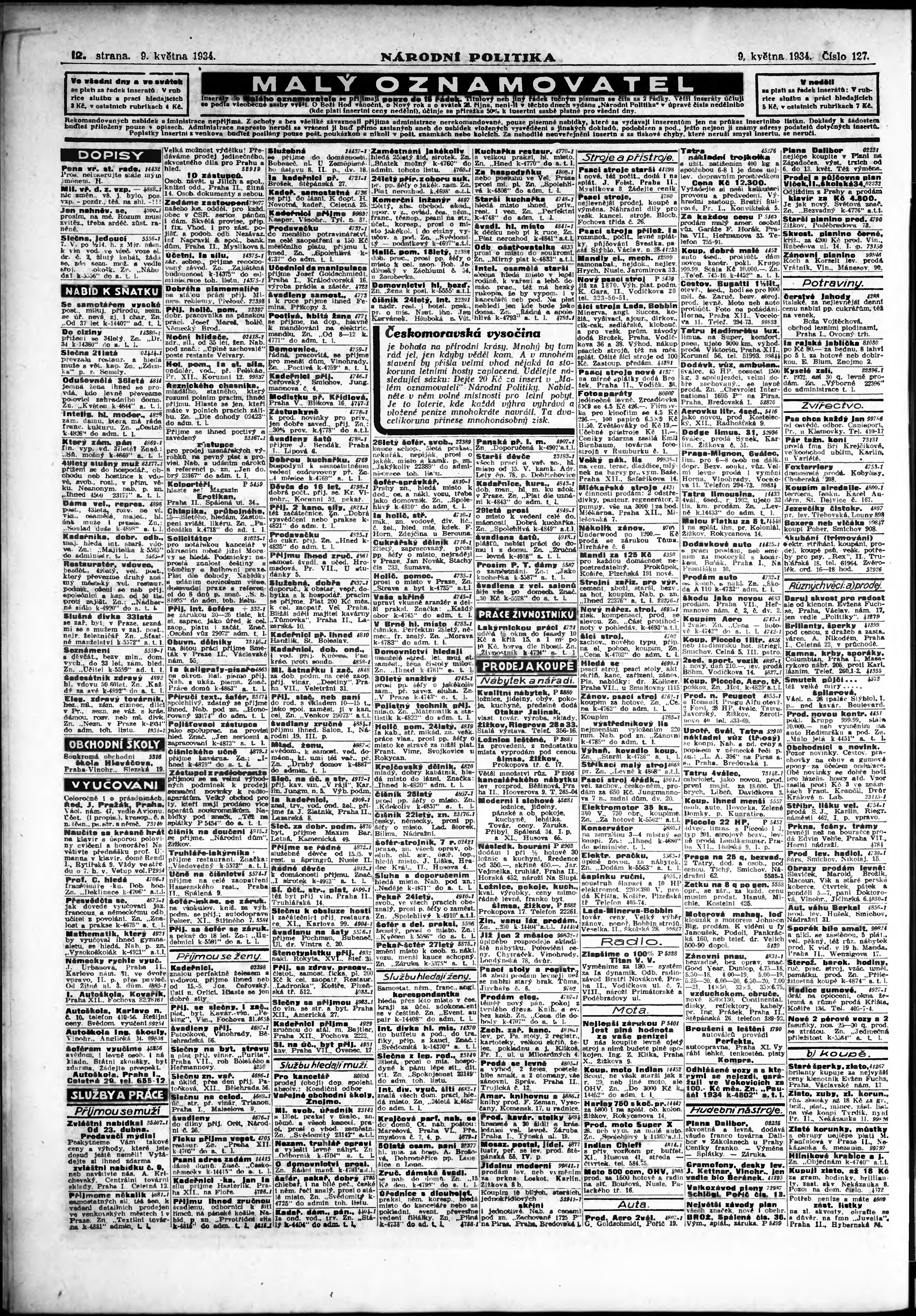 ranní vydání; vydání pro Prahu;