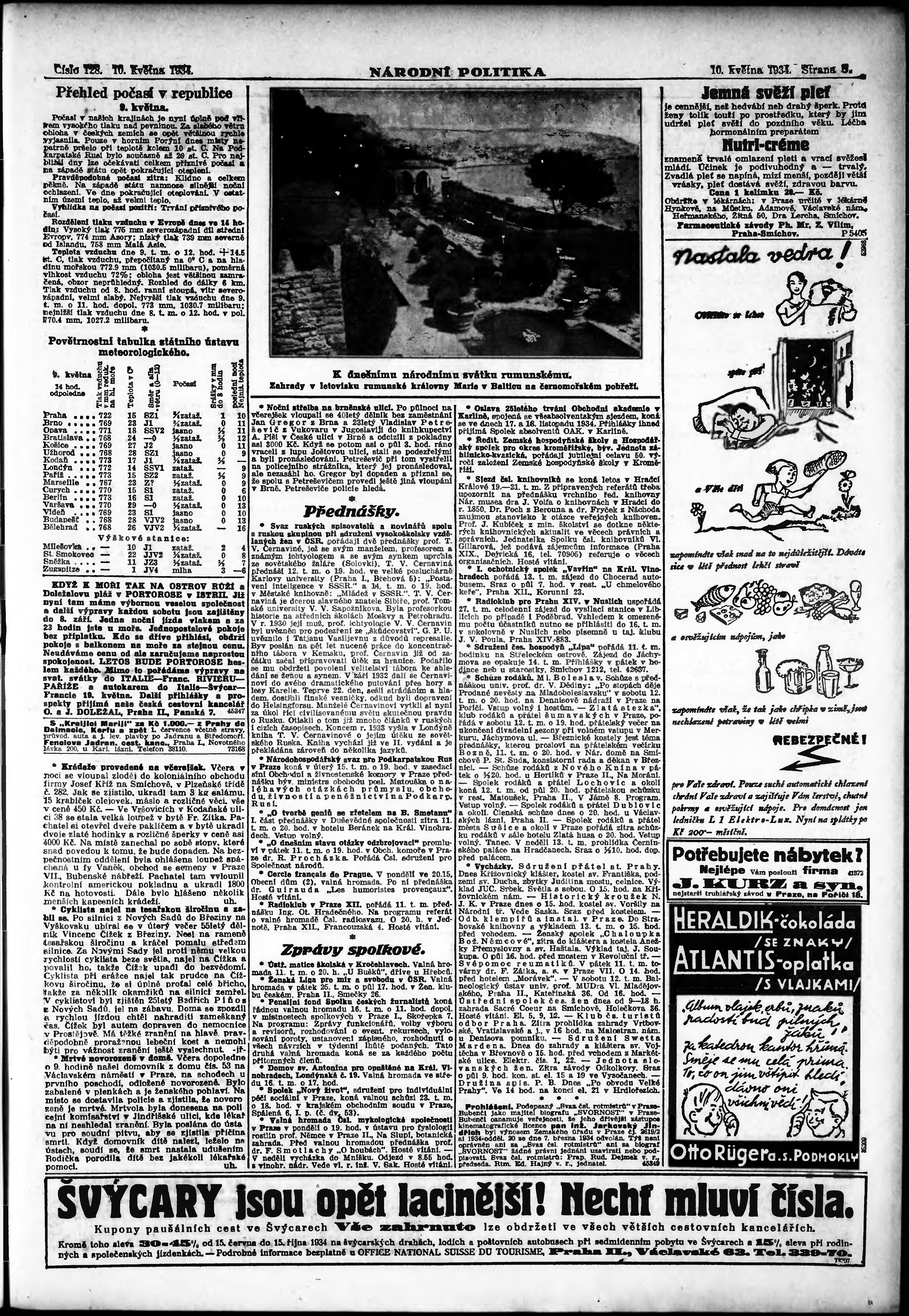 * Datum vydání výtisku: 10.5.1934 Číslo výtisku: 128 Poznámky k výtisku: ranní vydání;