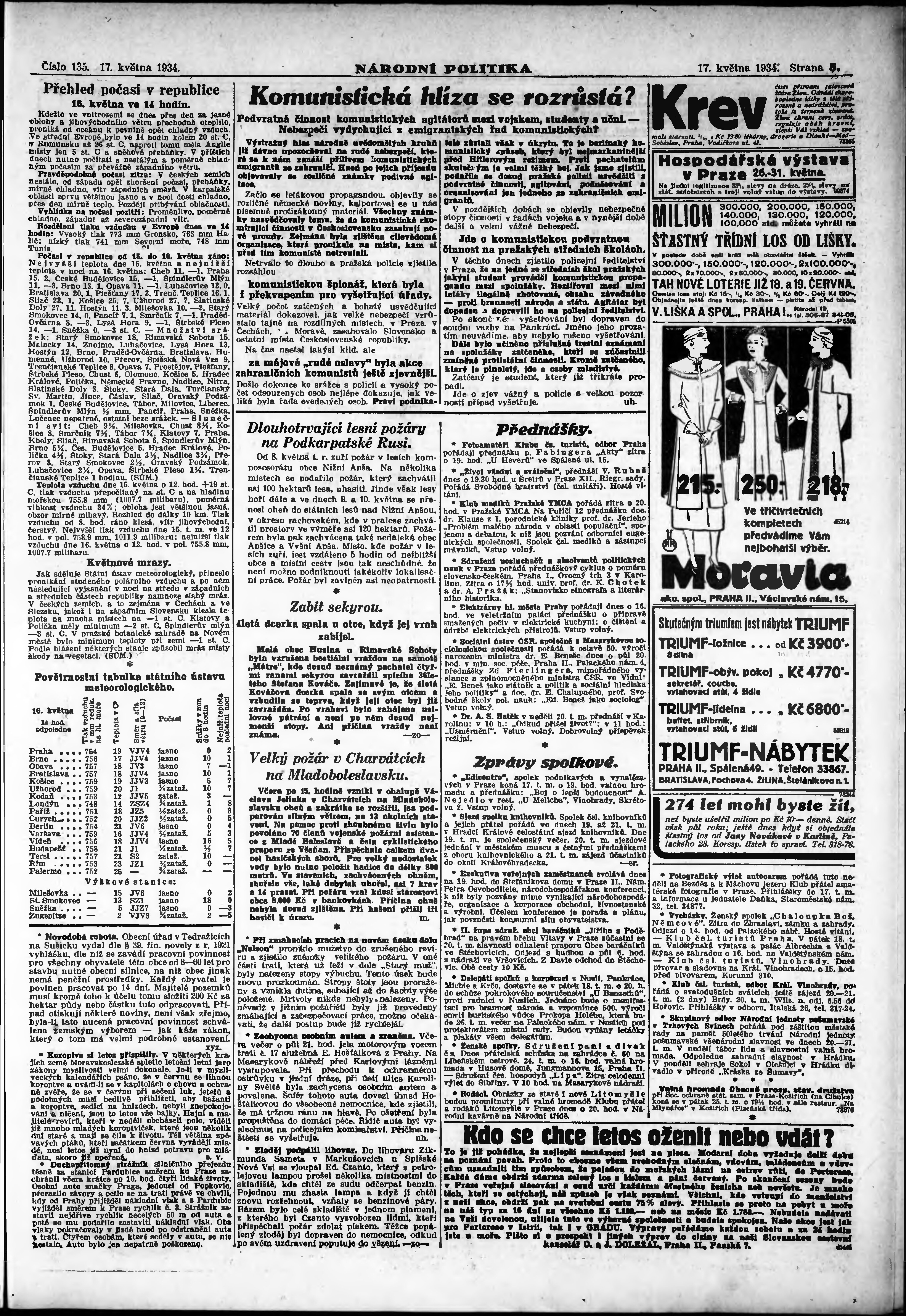 * Datum vydání výtisku: 17.5.1934 Číslo výtisku: 135 Poznámky k výtisku: ranní vydání; vydání pro Prahu;