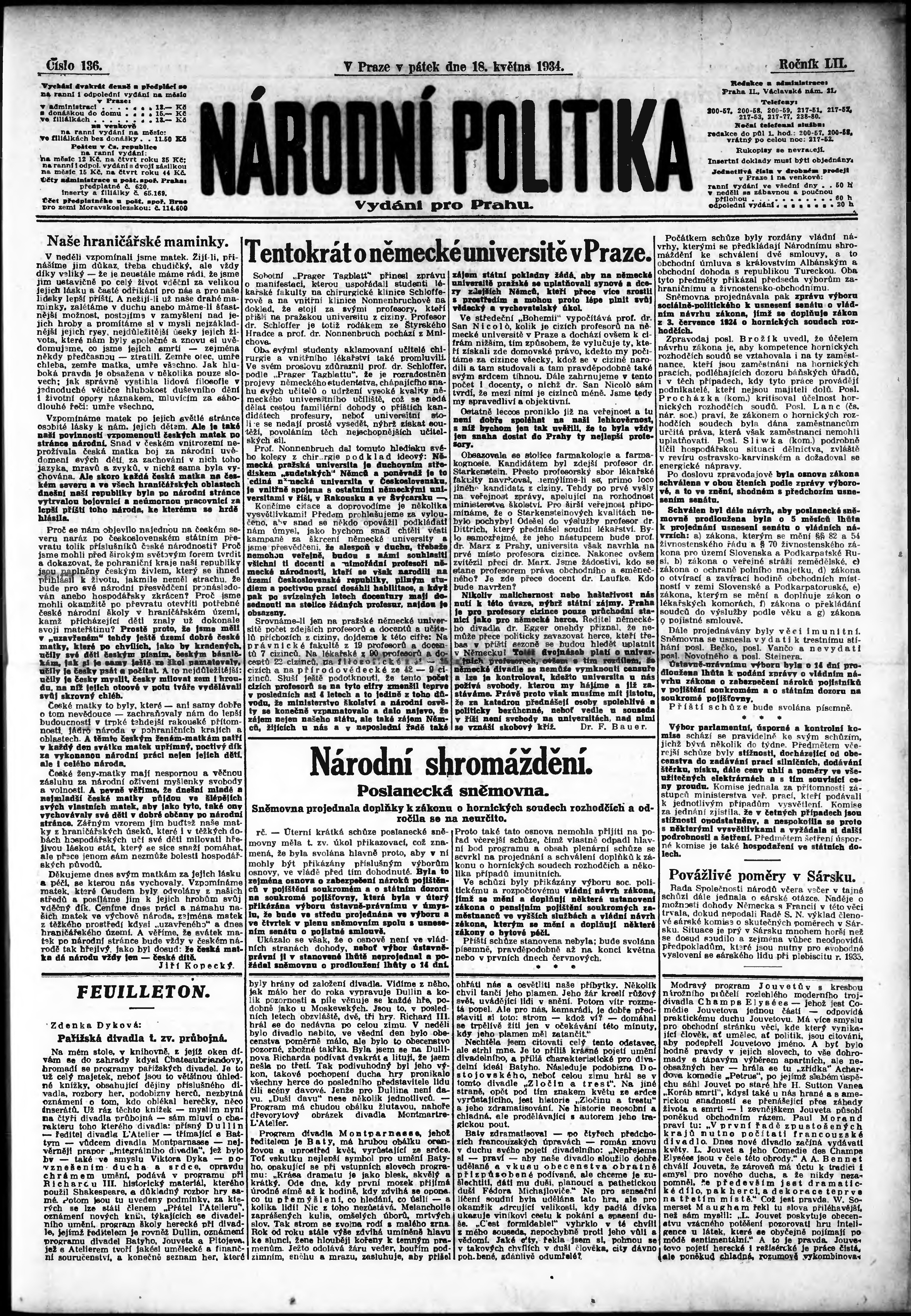 ranní vydání; vydání pro Prahu;