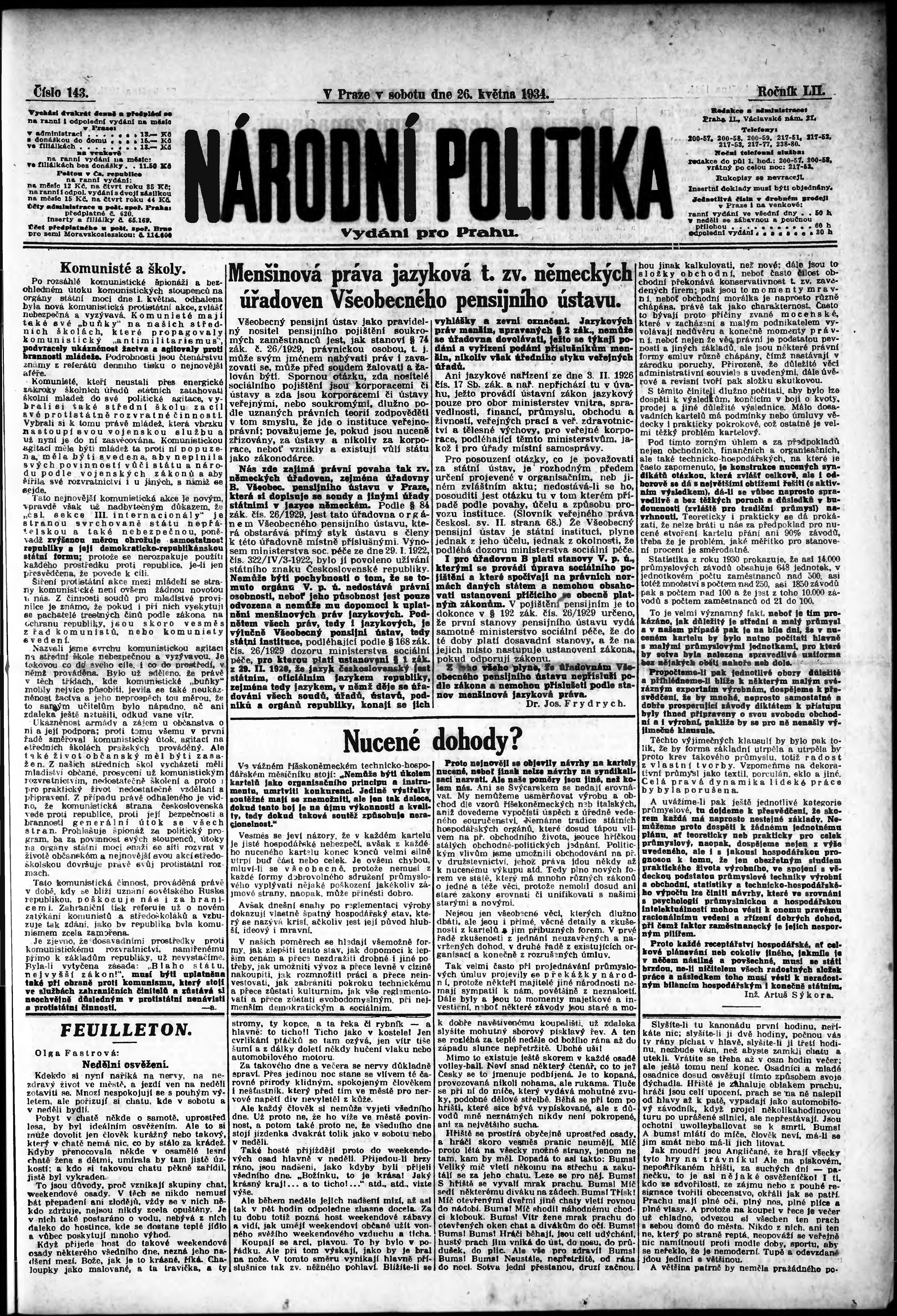 ranní vydání; vydání pro Prahu;