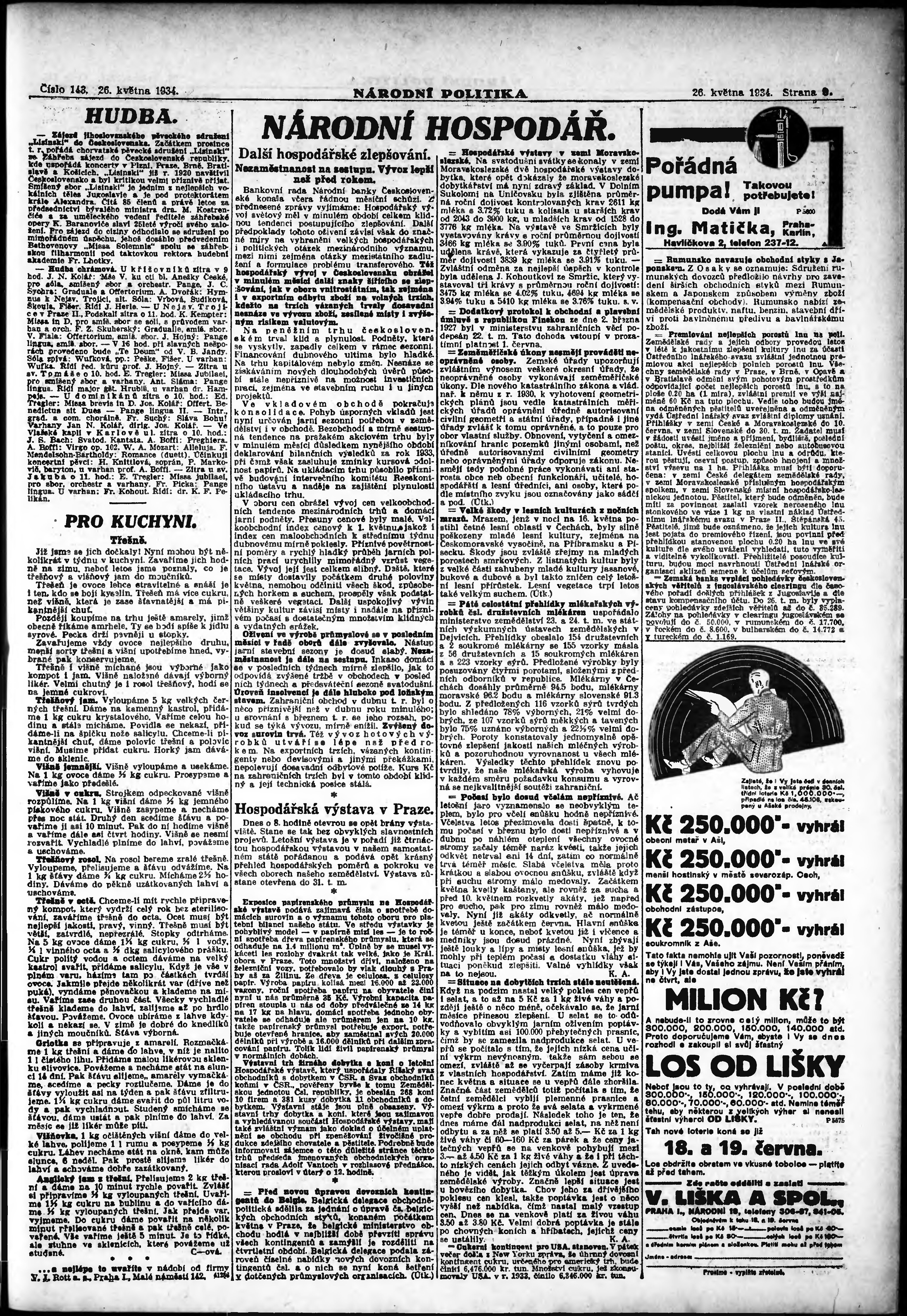 * Datum vydání výtisku: 26.5.1934 Číslo výtisku: 143 Poznámky k výtisku: ranní vydání; vydání pro Prahu;
