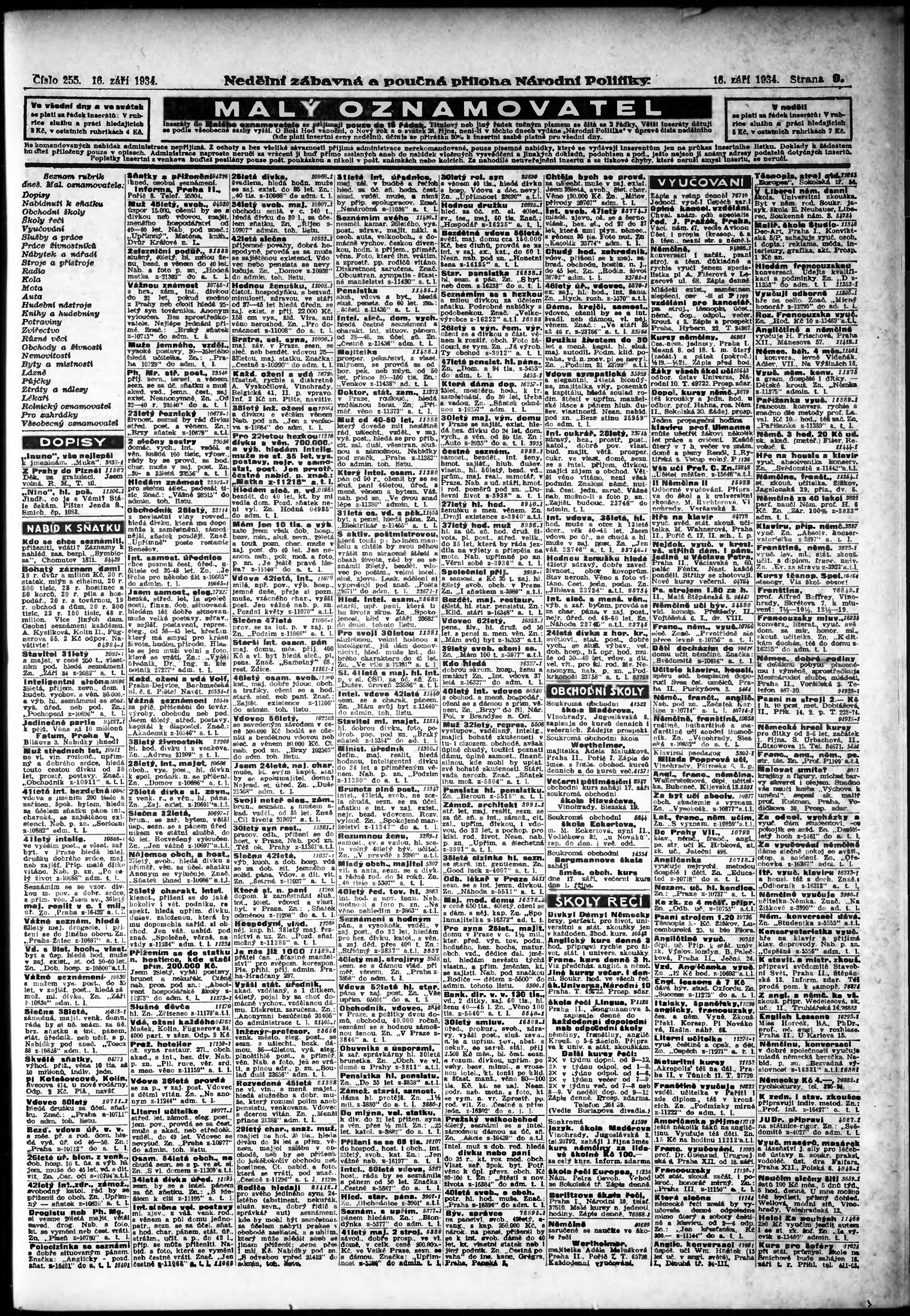 * Datum vydání výtisku: 16.9.1934 Číslo výtisku: 255 Typ výtisku: příloha